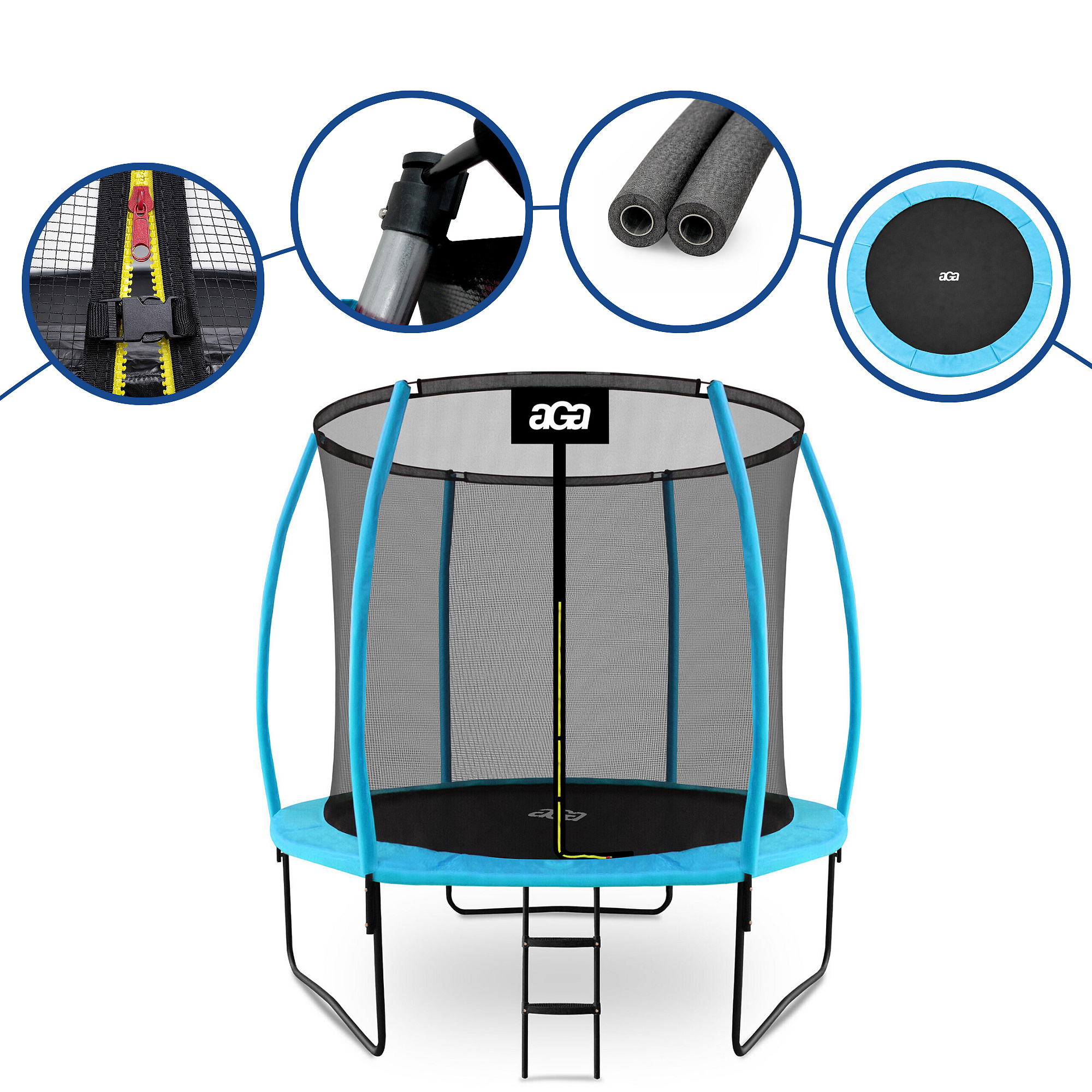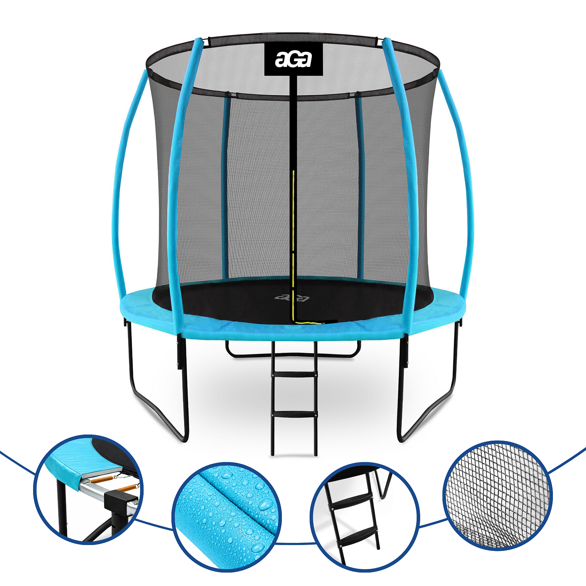 Aga trambulin belső védőhálóval kifejezetten a gyermekek és felnőttek biztonságos szórakozására lett tervezve és gyártva.