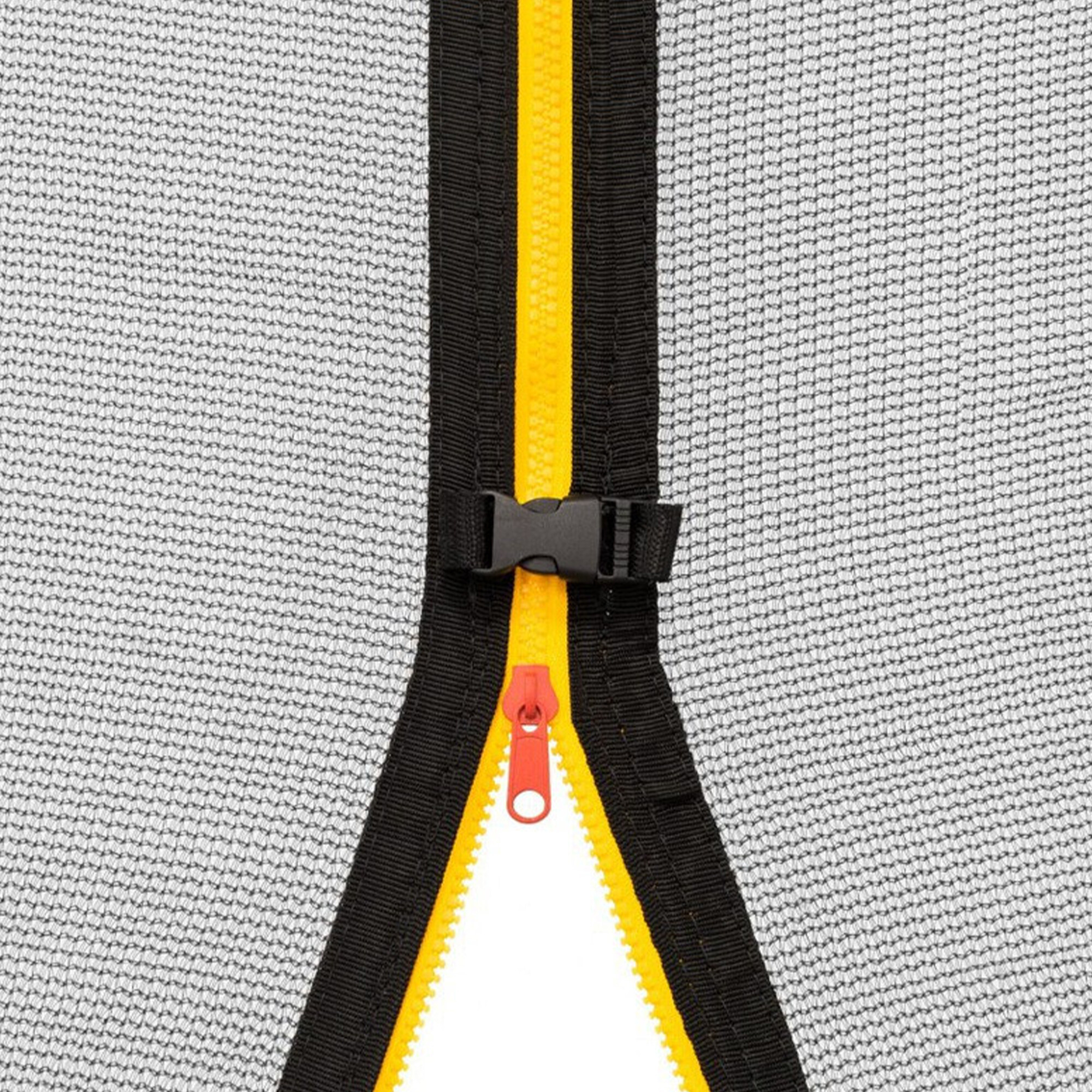 A bejárati nyílás L alakú cipzárral van ellátva, így biztosítva a trambulin teljes lezárását.