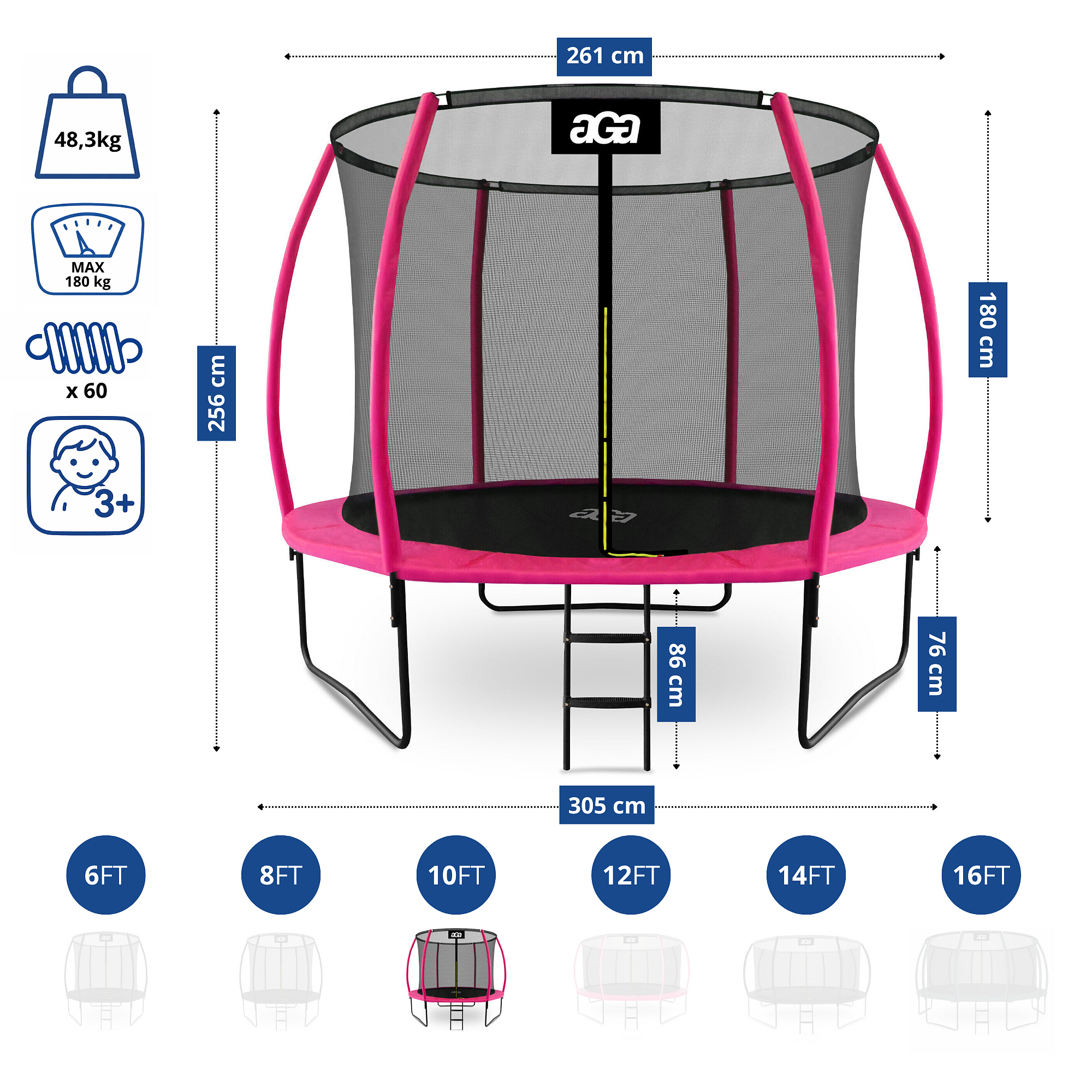 Az Aga trambulin belső védőhálóval kifejezetten a gyermekek és felnőttek biztonságos szórakozására lett tervezve és gyártva.