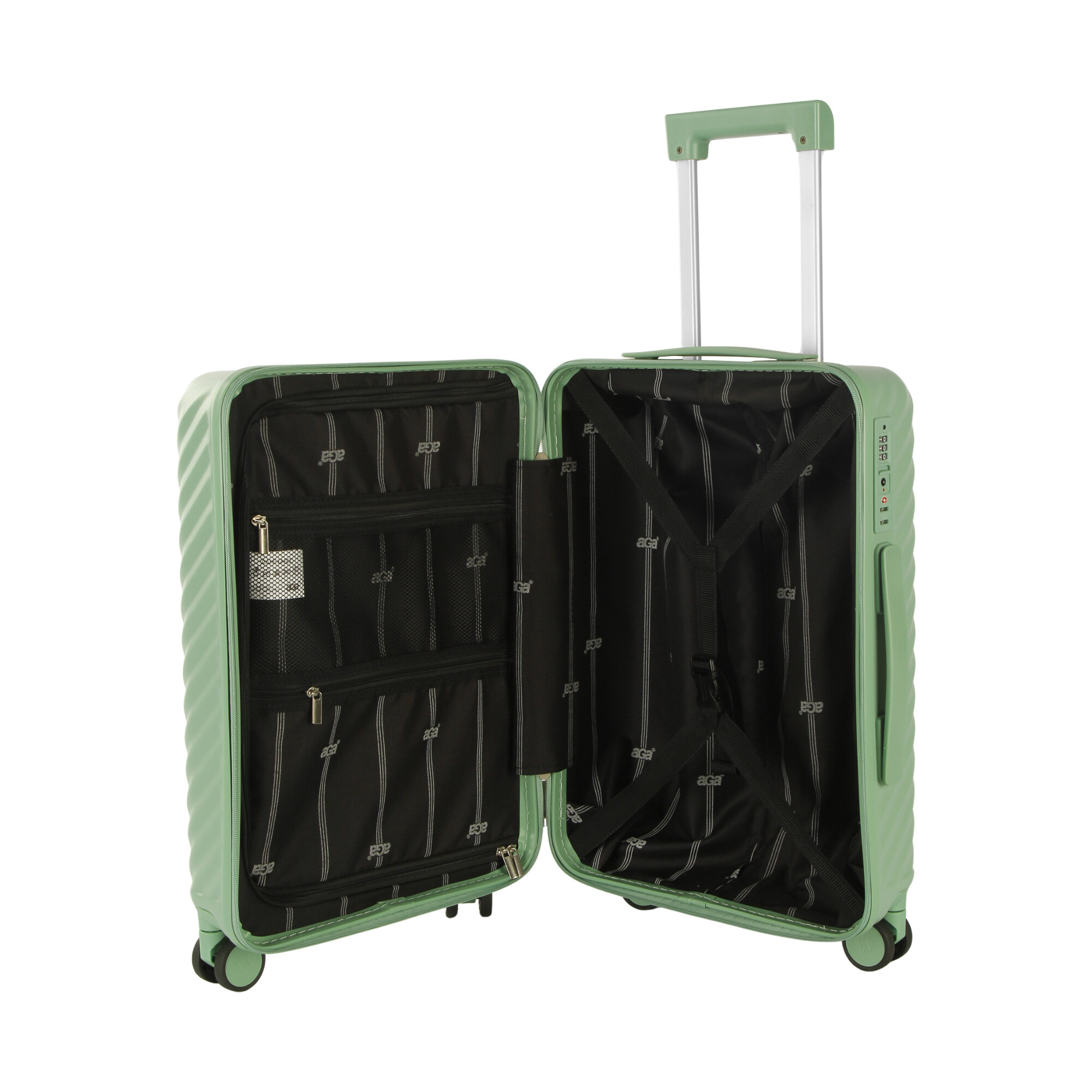 A bőröndök ABS és PC anyagok kombinációjából készülnek, ami biztosítja a magas ellenállóságot és könnyedséget. ABS (akrilnitril-butadién-sztirol) ismert szilárdságáról és ütésállóságáról, míg a PC (polikarbonát) extra védelmi réteget és rugalmasságot ad hozzá. Ez az anyagkombináció biztosítja, hogy poggyásza védve legyen a szállítás során bekövetkező sérülésektől.