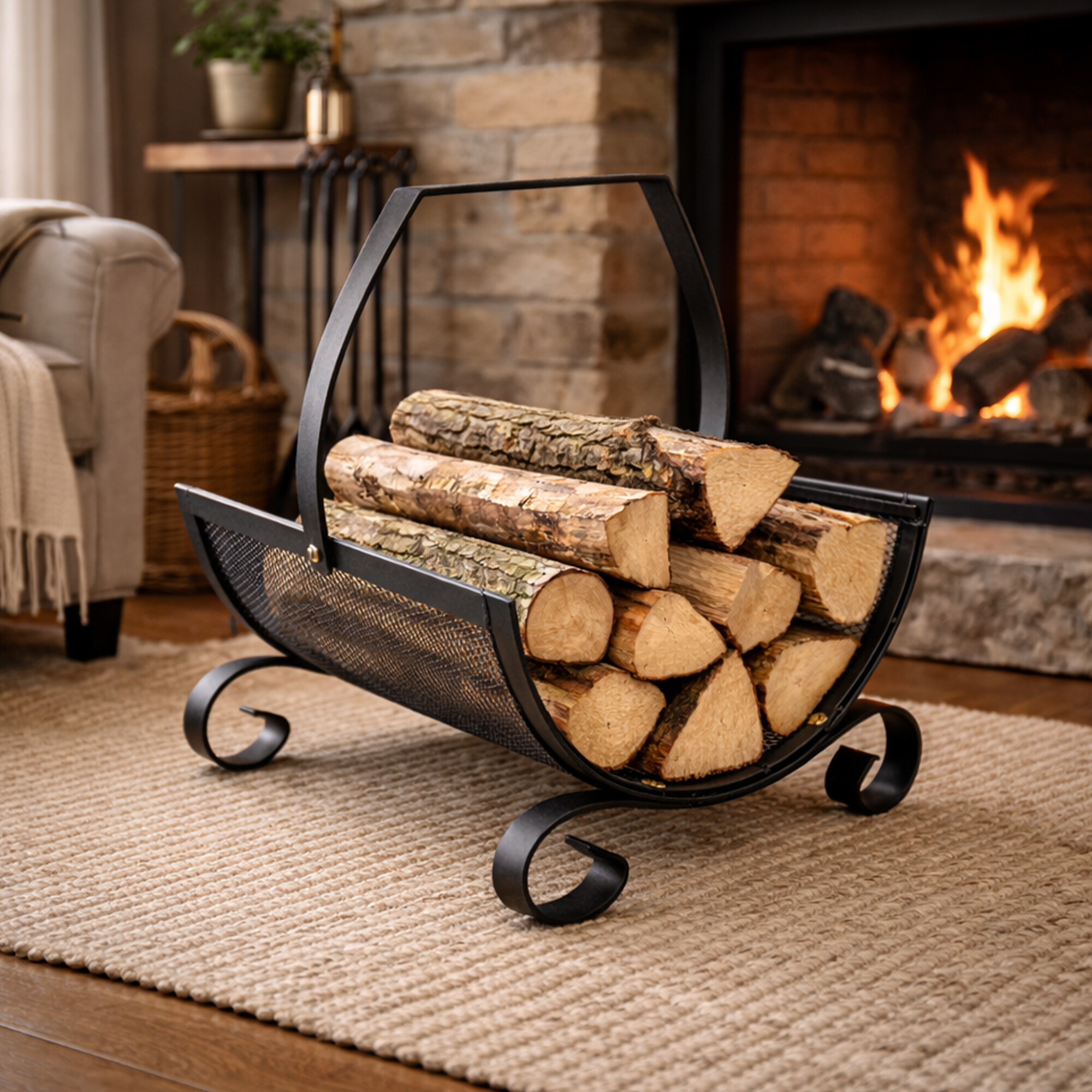 Az tárolás mellett érdekes kialakításával esztétikai funkciót is betölt, és rendet tart a fa kezelése során.