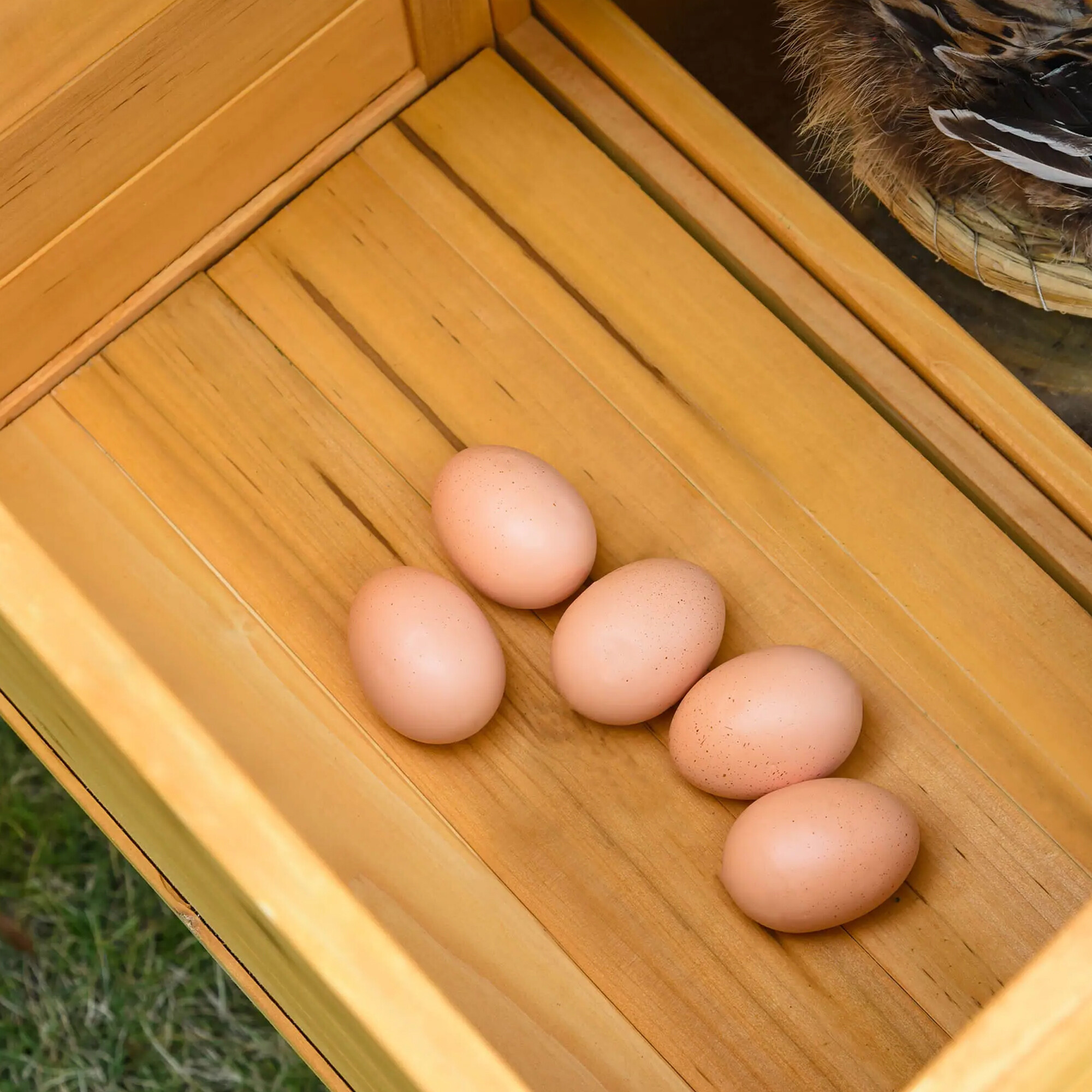Nincs többé bonyolult hajlítás és nyújtás, egyszerűen emelje fel a tetőt, és a tojások kéznél vannak.A tyúkól oldalsó fészkelő dobozzal van felszerelve, amely nyugodt és biztonságos helyet biztosít a tyúkoknak a tojásrakáshoz.