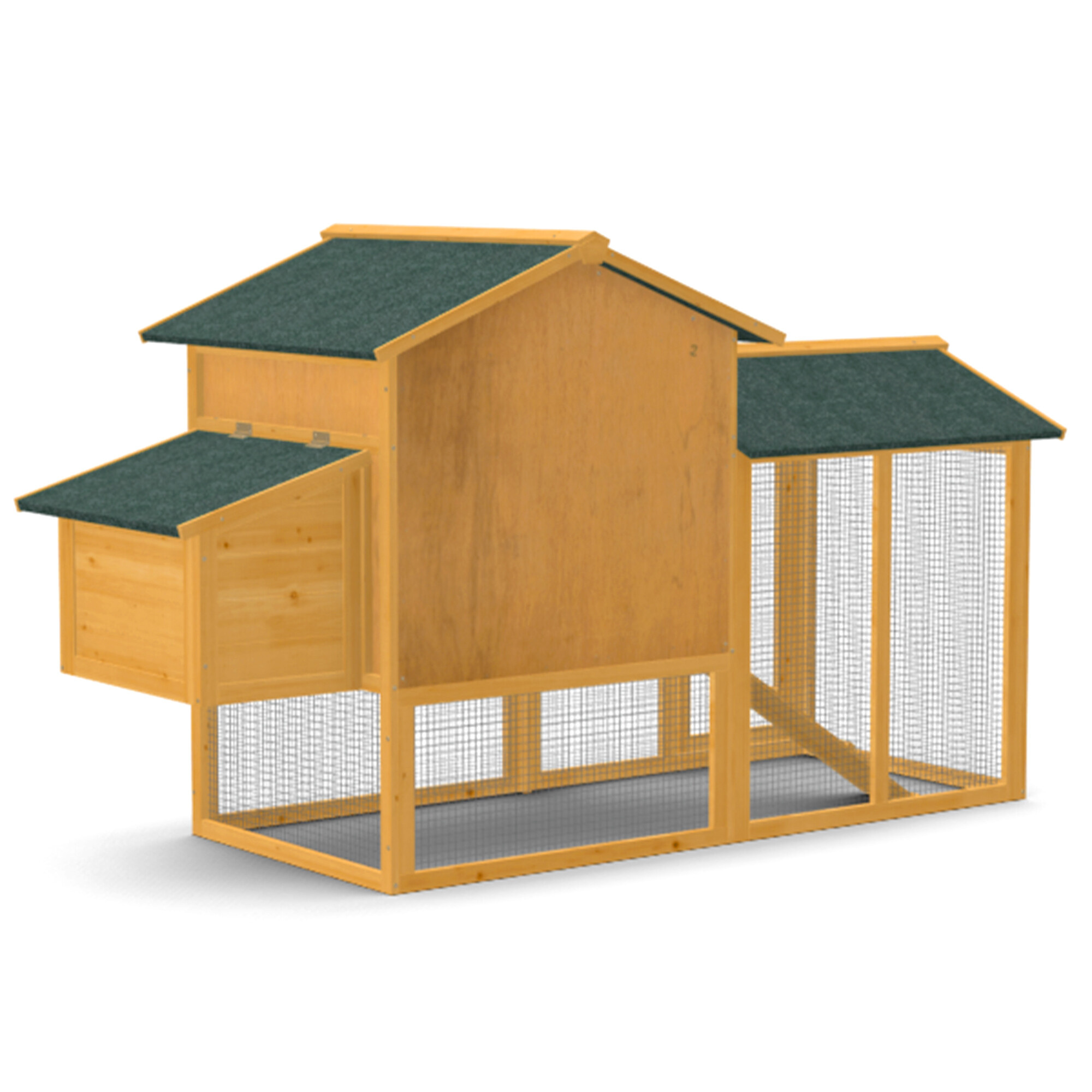 A tyúkól lucfenyőből készült, amely ismert szilárdságáról és tartósságáról. Ennek köszönhetően a tyúkól stabil és hosszú távon ellenáll a külső hatásoknak. A szerkezetet úgy tervezték, hogy elegendő helyet biztosítson a tyúkok számára, miközben könnyen hozzáférhető legyen a tenyésztők számára.