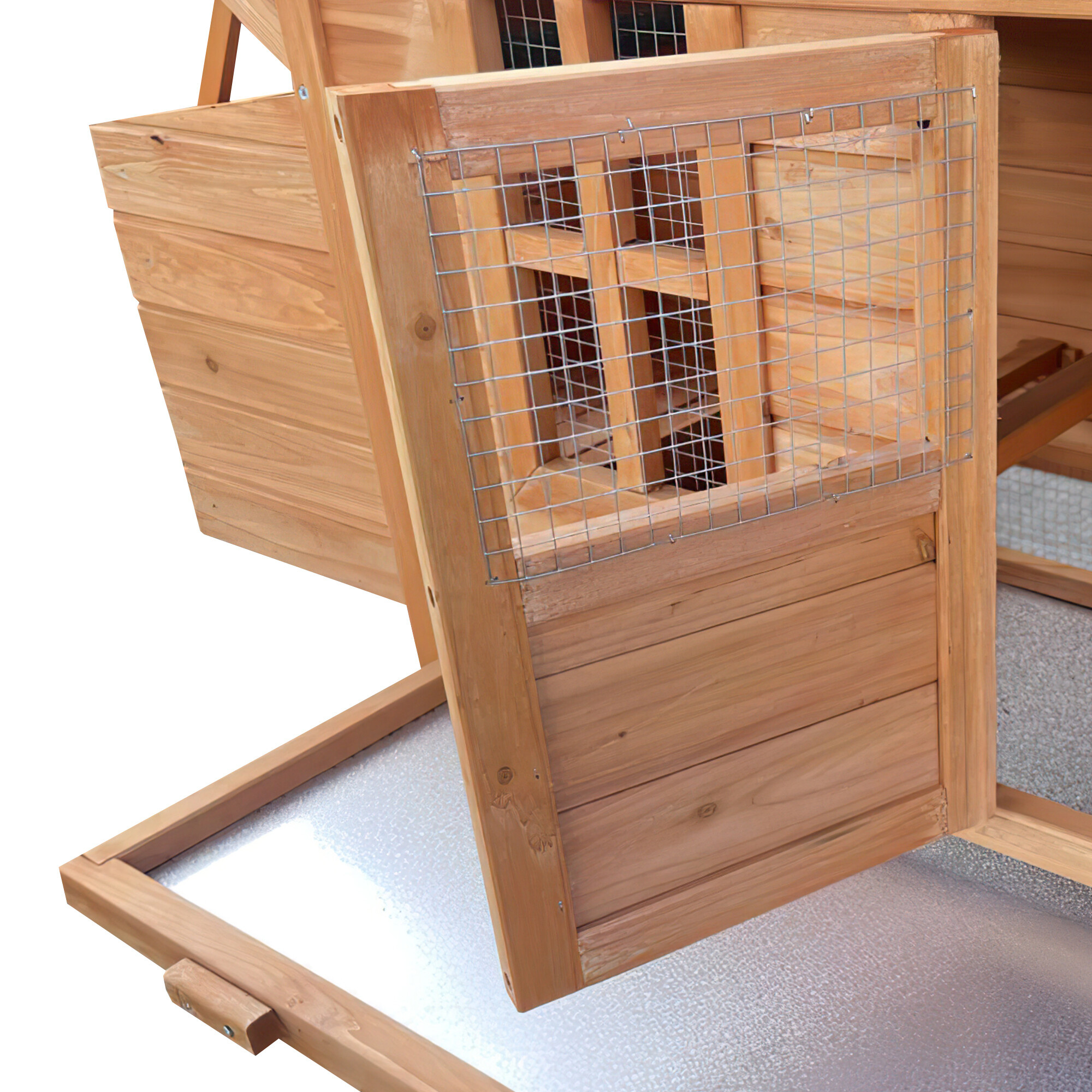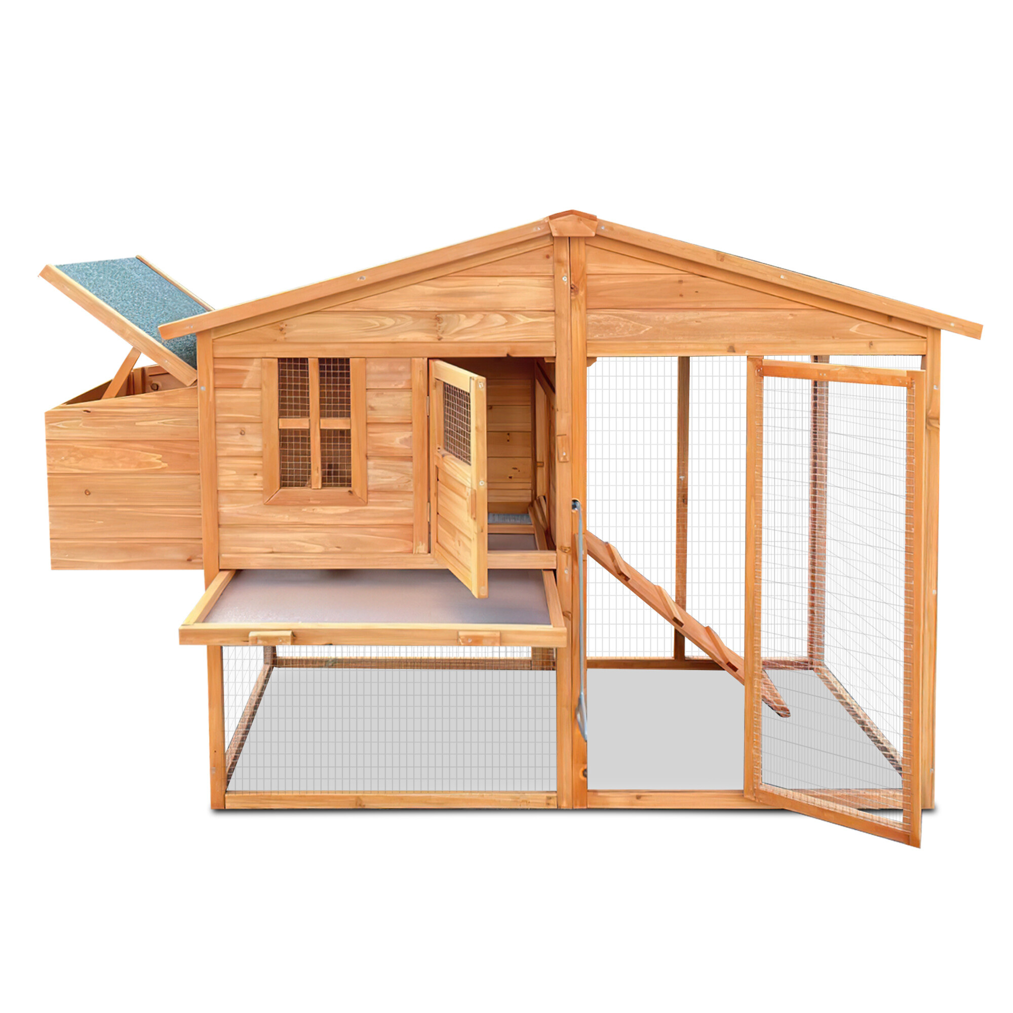 A kihúzható alomtálca nagyszerű segítőtárs a tisztaság fenntartásában, elég egyszerűen kihúzni, kitisztítani és visszahelyezni.A tyúkketrec univerzális kialakítása lehetővé teszi, hogy különböző állatfajok számára is használható legyen.