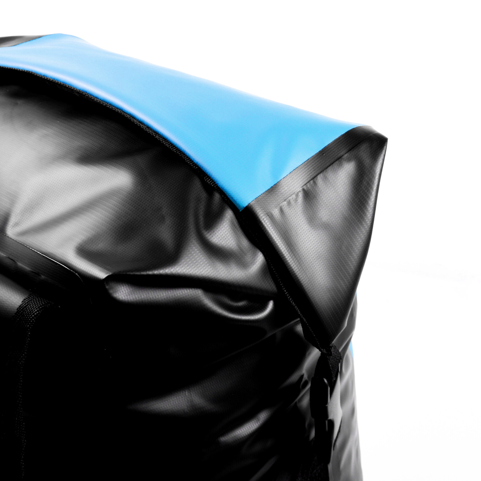 A felső részt hajtsa le legalább háromszor-ötször lefelé, majd mindkét végét kösse össze és csatolja be a csatot. Az Ön dolgai így tökéletesen védve lesznek a víz és a nedvesség ellen, például még a hajó felborulása esetén is.