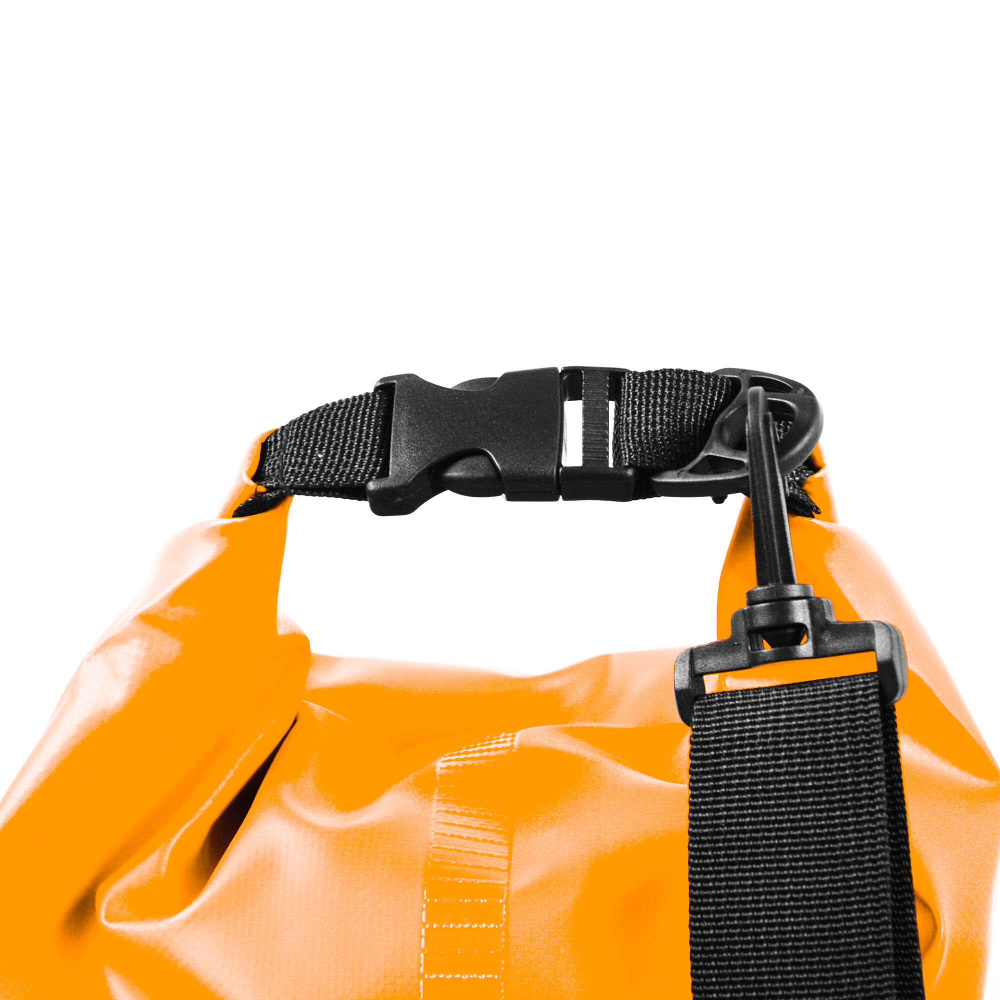 A felső részt hajtsa le legalább háromszor-ötször lefelé, majd mindkét végét kösse össze és csatolja be a csatot. Az Ön dolgai így tökéletesen védve lesznek a víz és a nedvesség ellen, például még a hajó felborulása esetén is.