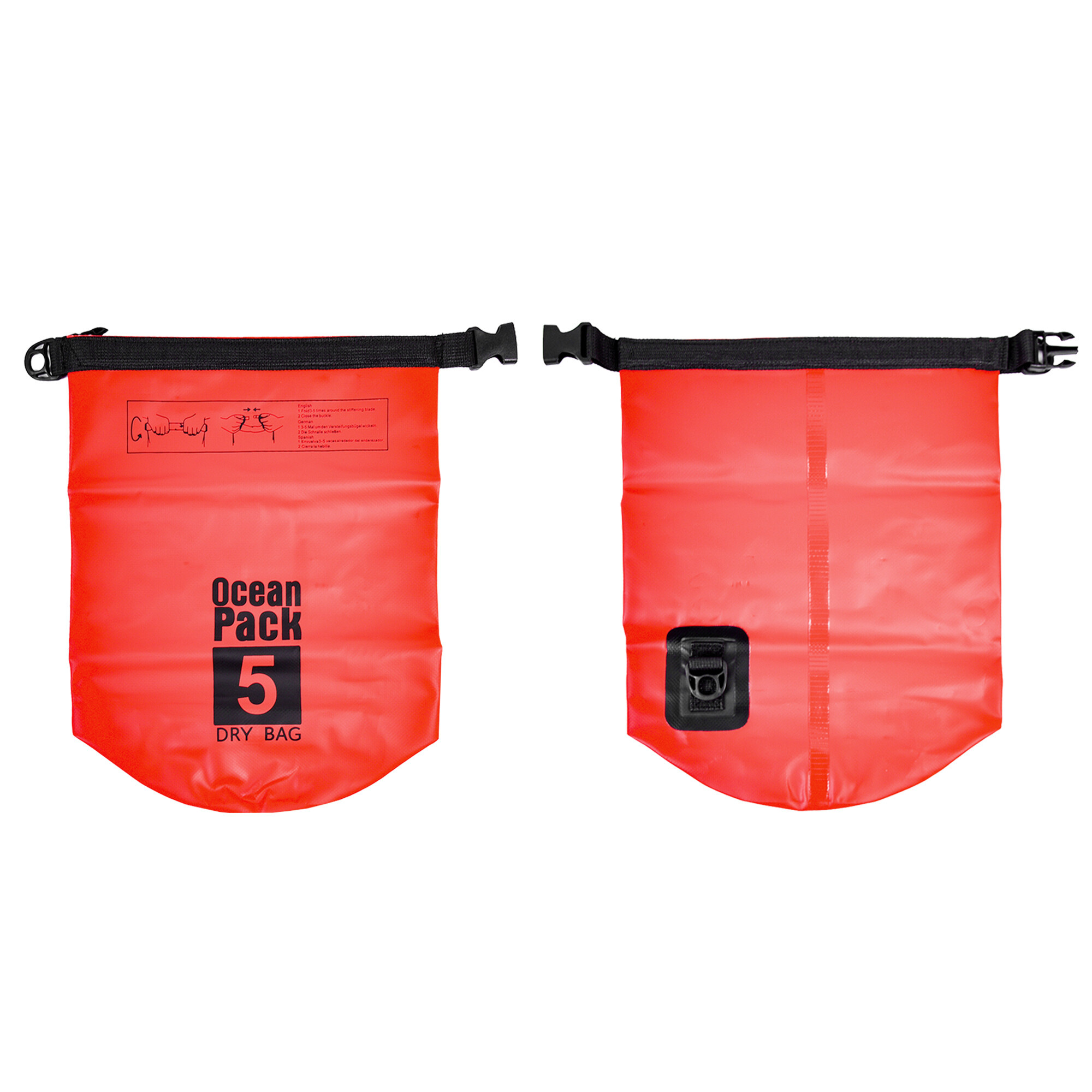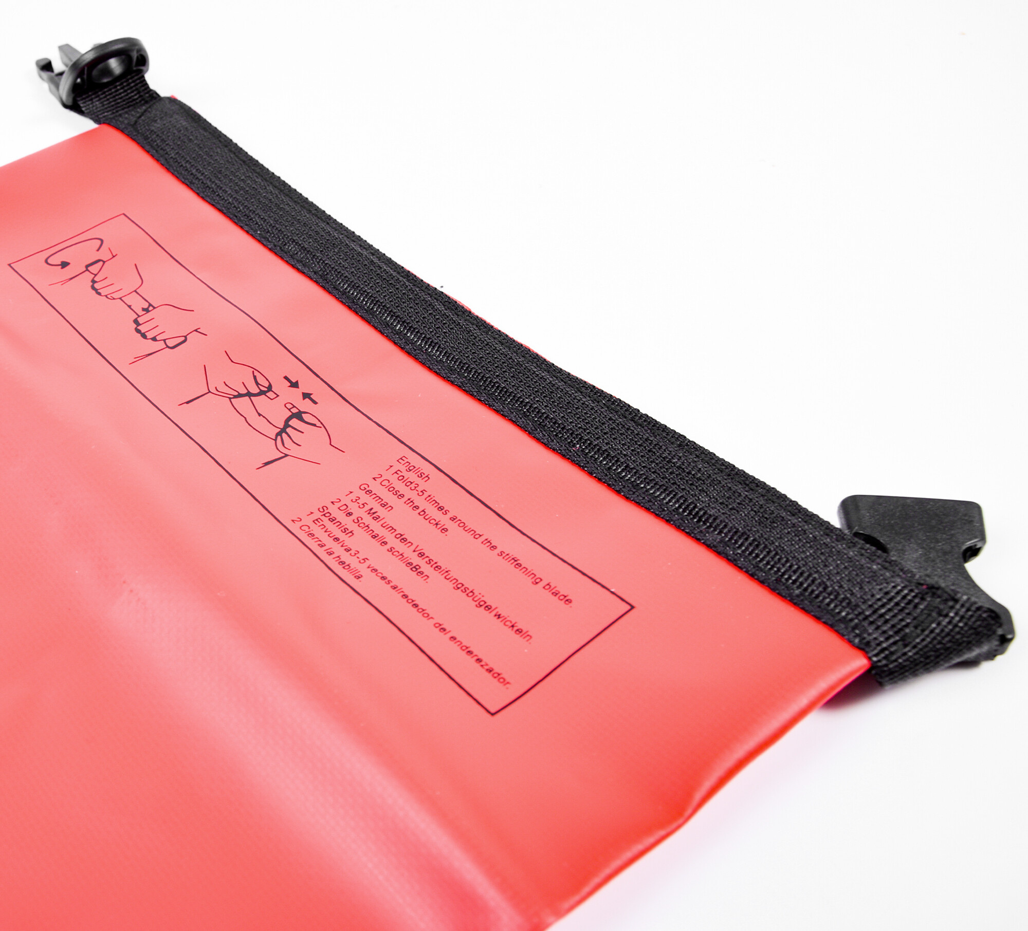 A felső részt hajtsa le legalább háromszor-ötször lefelé, majd mindkét végét kösse össze és csatolja be a csatot. Az Ön dolgai így tökéletesen védve lesznek a víz és a nedvesség ellen, például még a hajó felborulása esetén is.