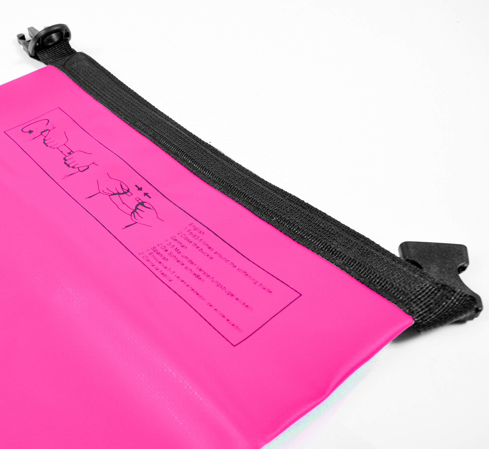 A felső részt hajtsa le legalább háromszor-ötször lefelé, majd mindkét végét kösse össze és csatolja be a csatot. Az Ön dolgai így tökéletesen védve lesznek a víz és a nedvesség ellen, például még a hajó felborulása esetén is.