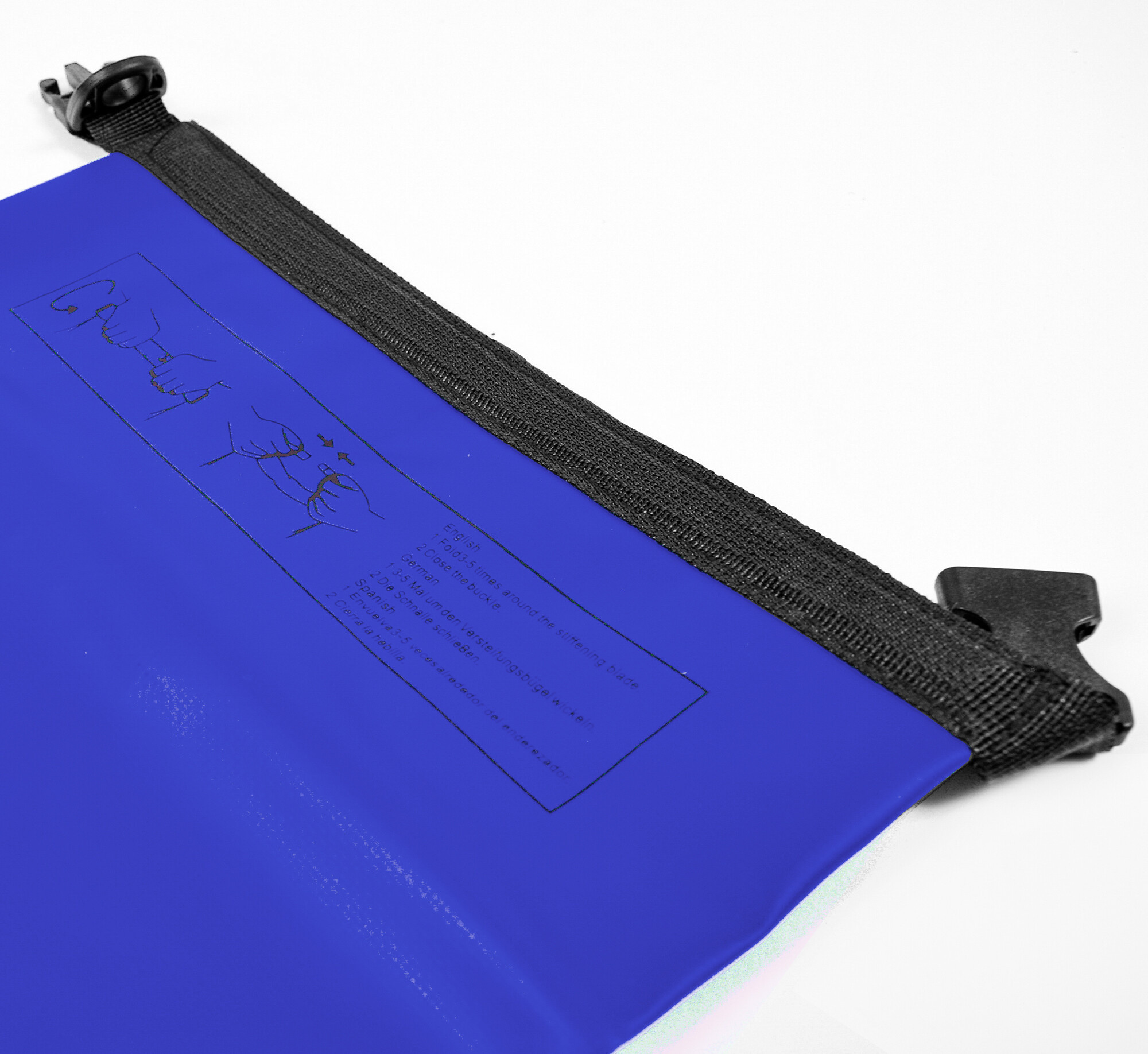 A felső részt hajtsa le legalább háromszor-ötször lefelé, majd mindkét végét kösse össze és csatolja be a csatot. Az Ön dolgai így tökéletesen védve lesznek a víz és a nedvesség ellen, például még a hajó felborulása esetén is.