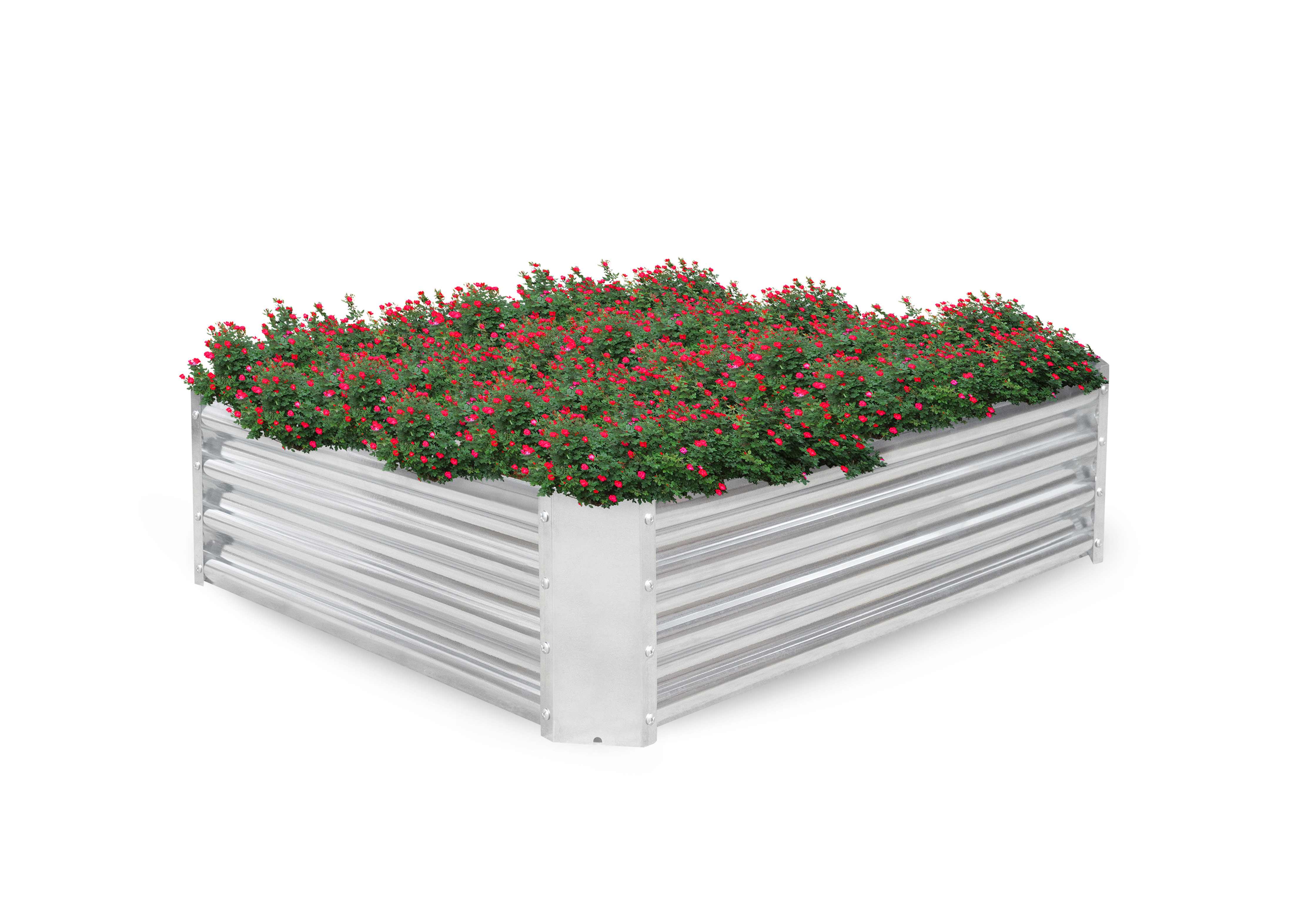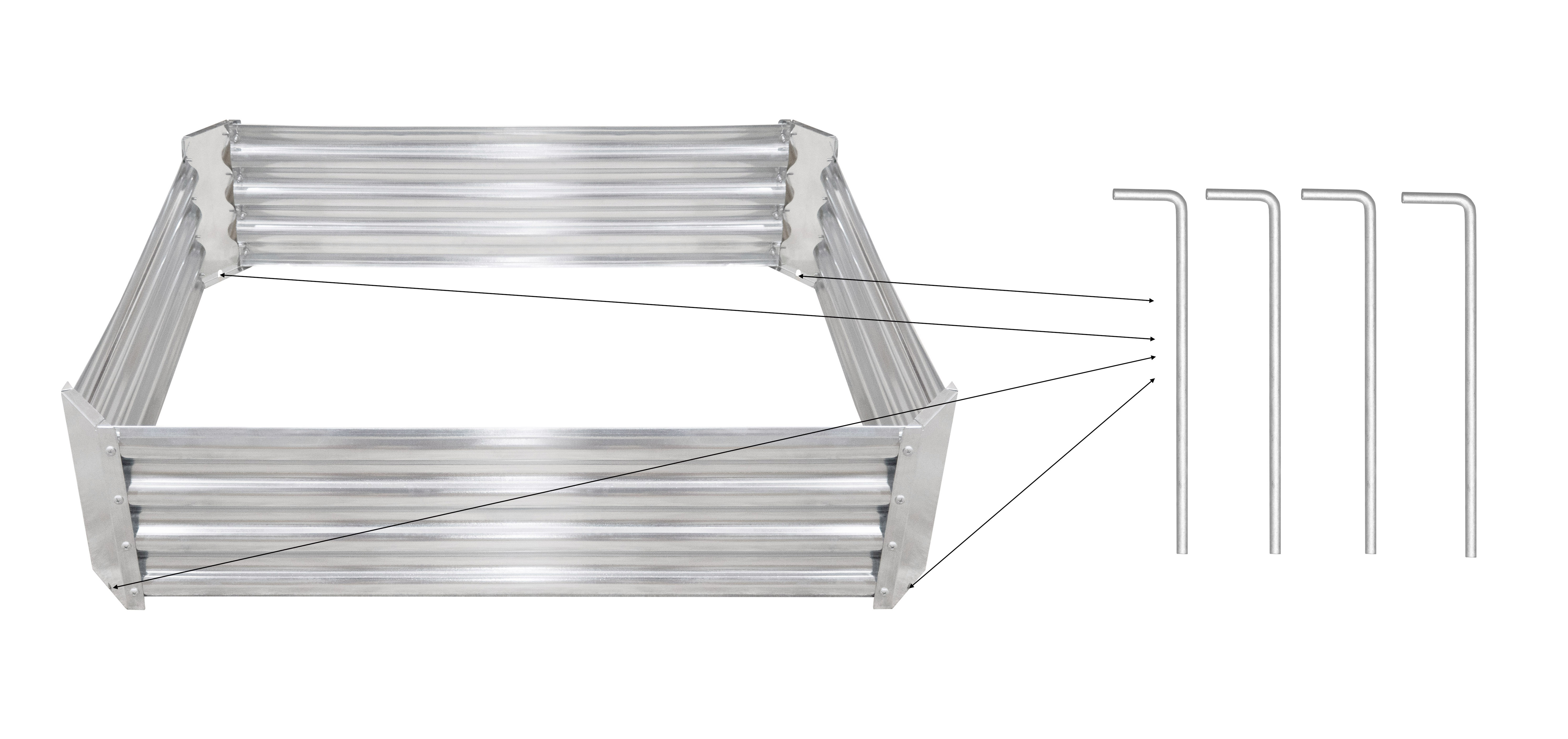 Az ágyás tartós horganyzott acélból készült, így kiválóan ellenáll az időjárásnak, és alkalmas kültéri használatra.