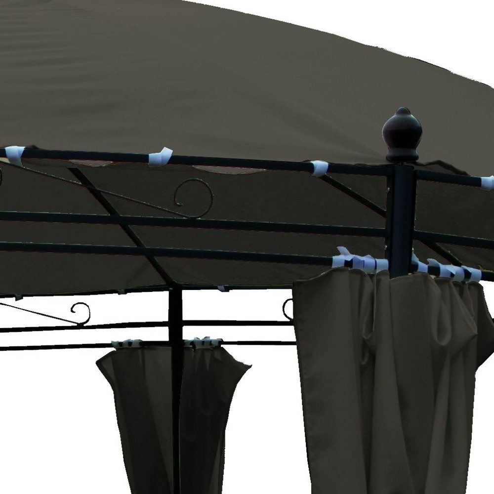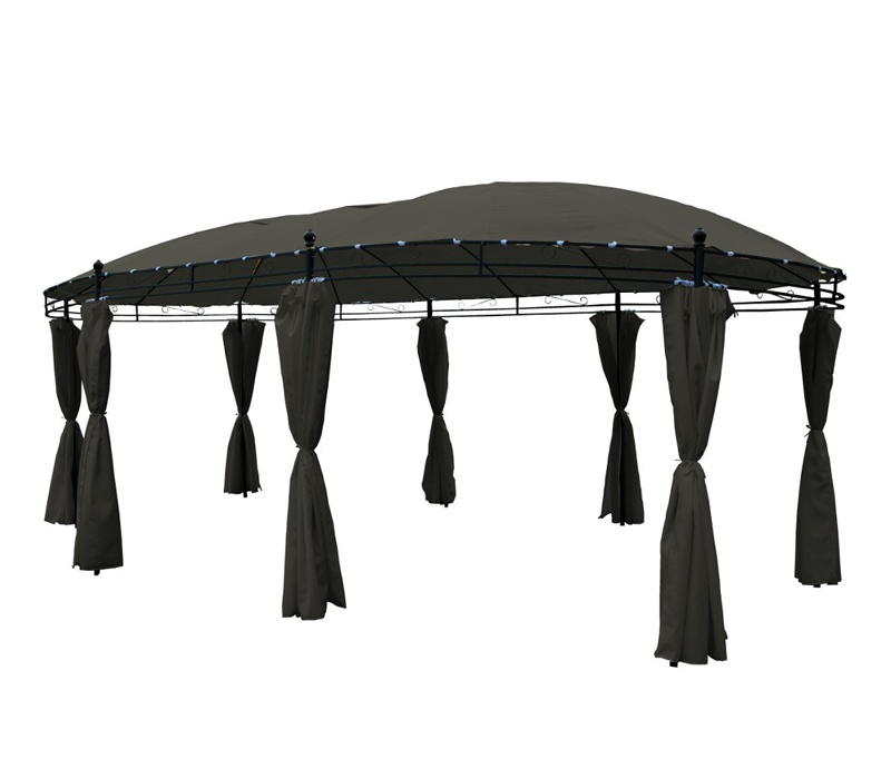 Kerti pavilon szilárd és stabil szerkezettel, ovális kialakítású, visszahúzható zsanérokkal.
