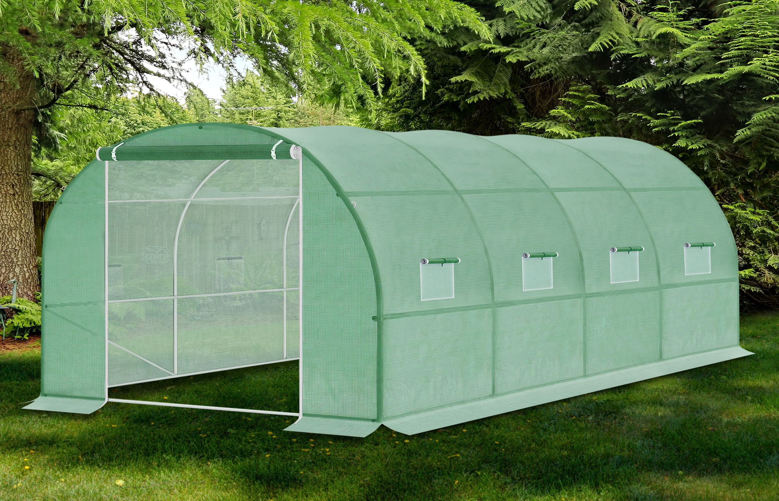 A redőnyöket fel lehet tekerni és fent rögzíteni.Az optimális 200 cm-es magasság lehetővé teszi a szabad mozgást és a munkavégzést a fóliasátorban.