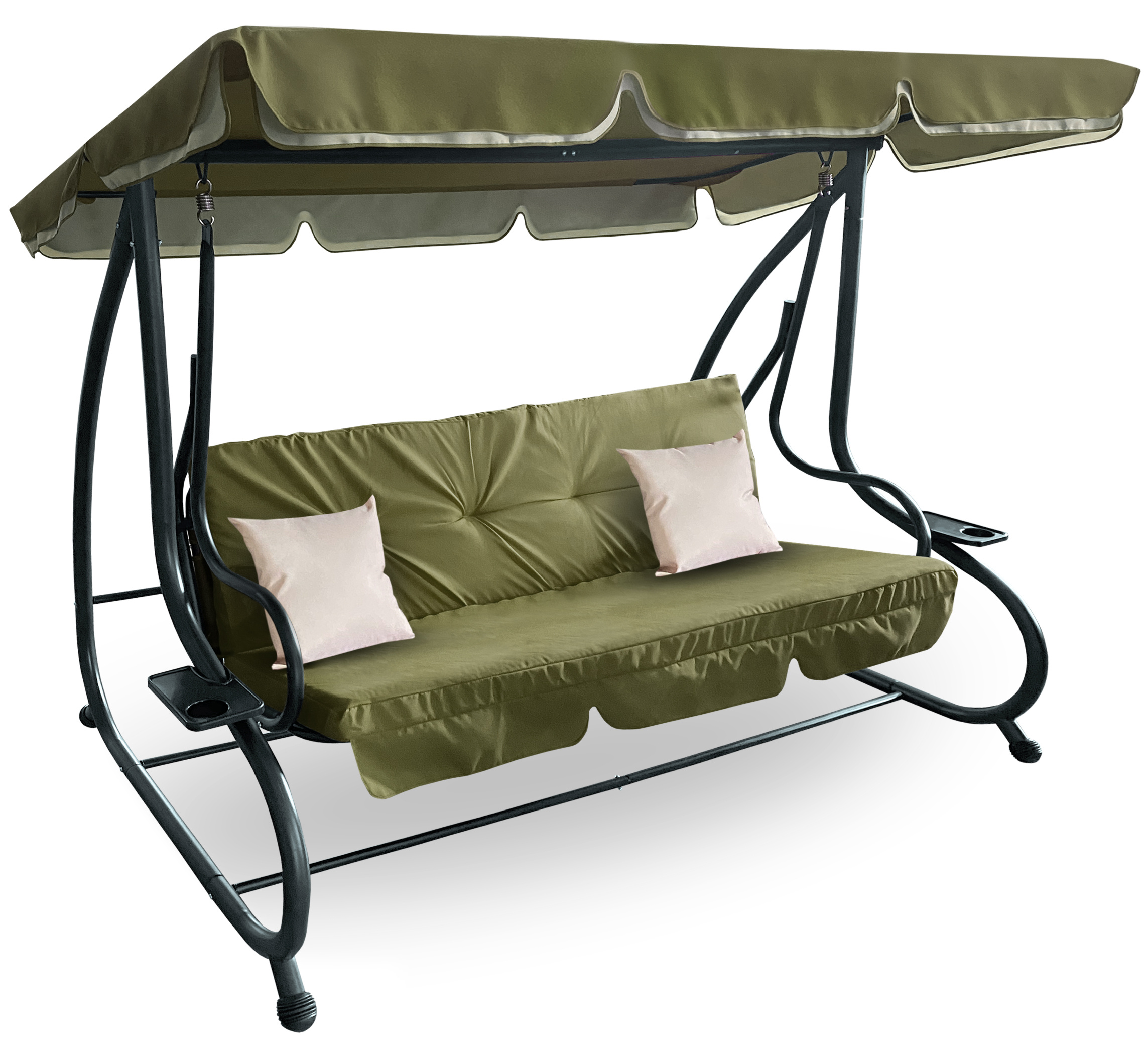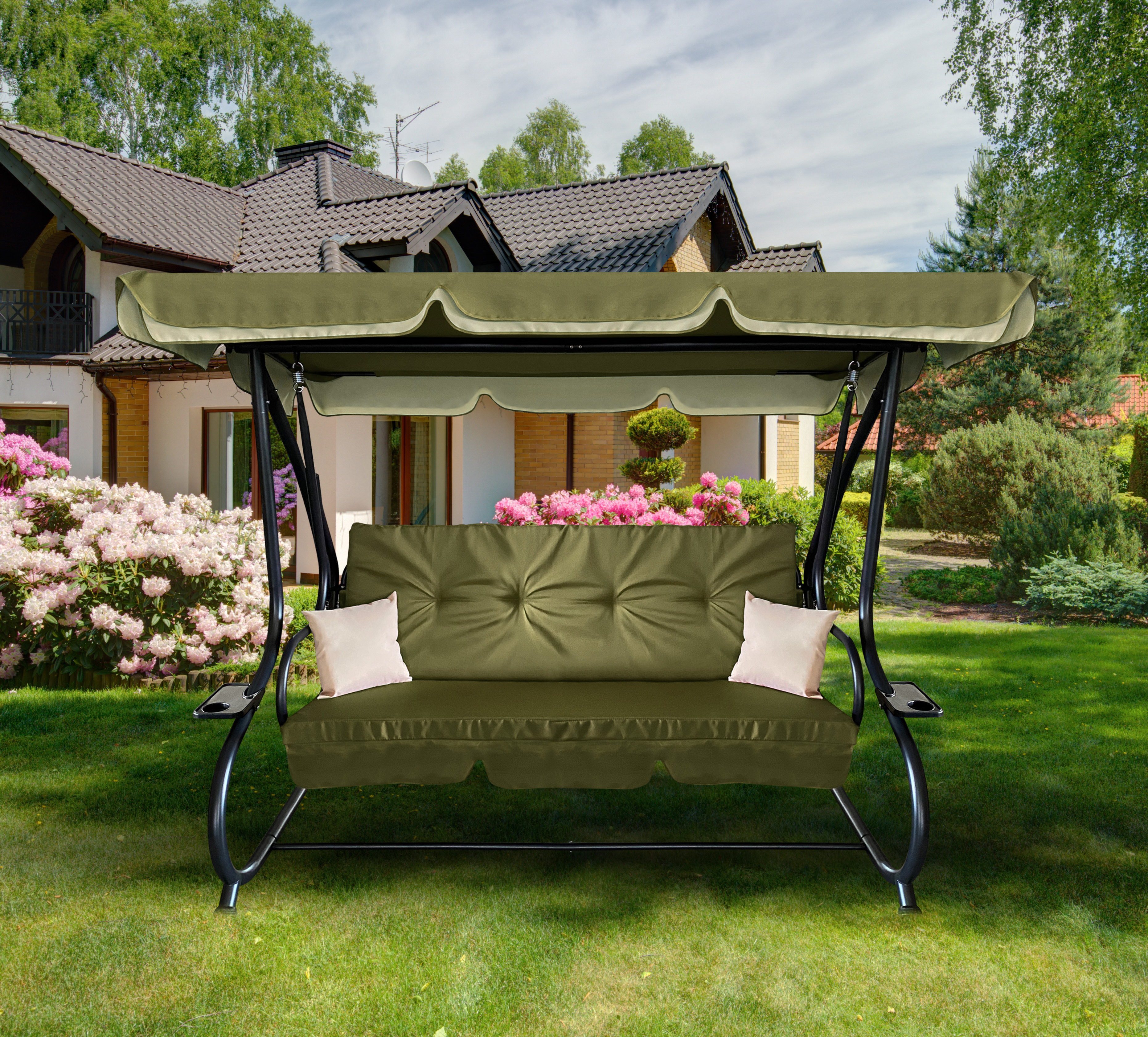 A hinta stabilitását és hosszú élettartamát a porszórt acélszerkezet biztosítja.