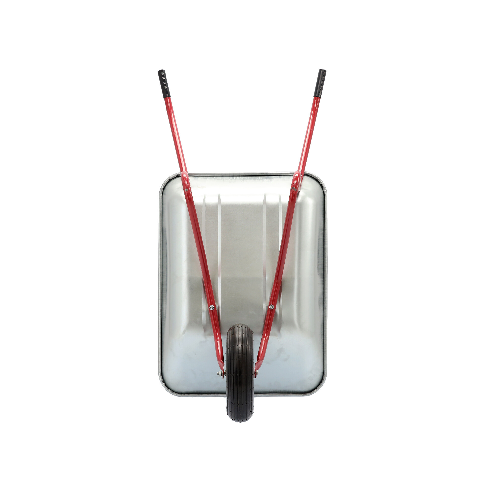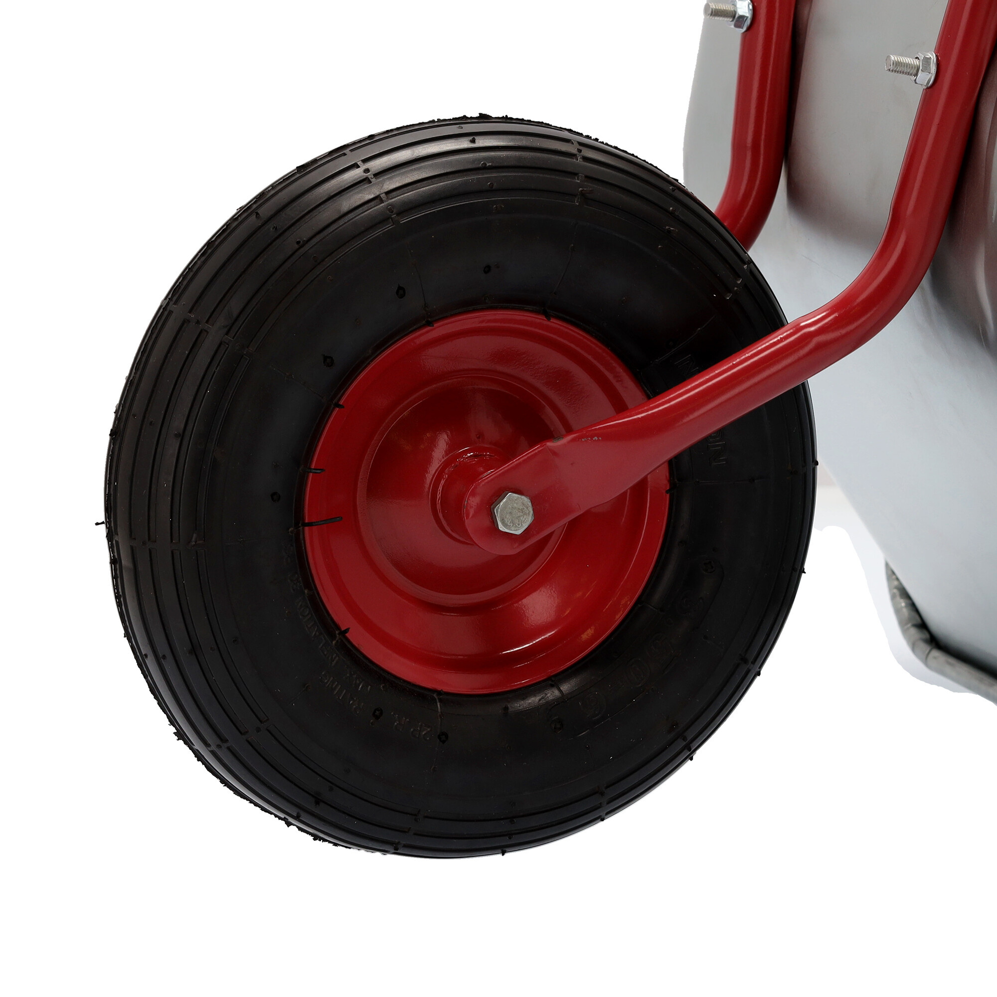 A talicska felfújható kerékkel van felszerelve, amely megkönnyíti a kezelést egyenetlen terepen is.