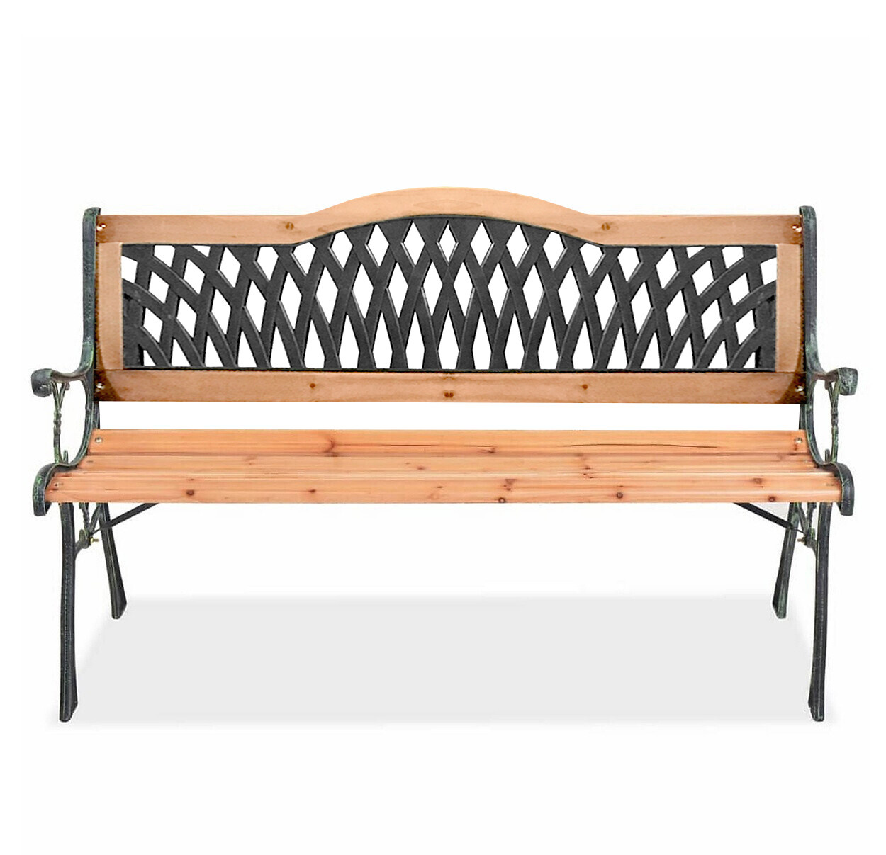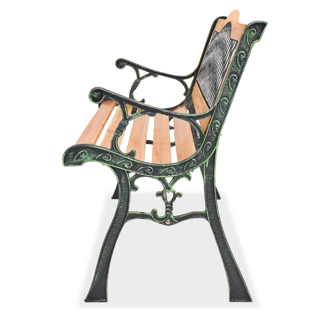 Erős acélszerkezet, amelyet fa lécek egészítenek ki.