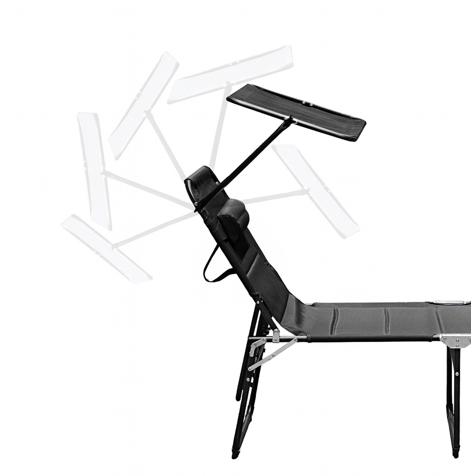 A nyugágyon még erős napsütésben is lehet pihenni, mivel a beépített tető tökéletesen megvédi az arcát az erős napsütéstől.