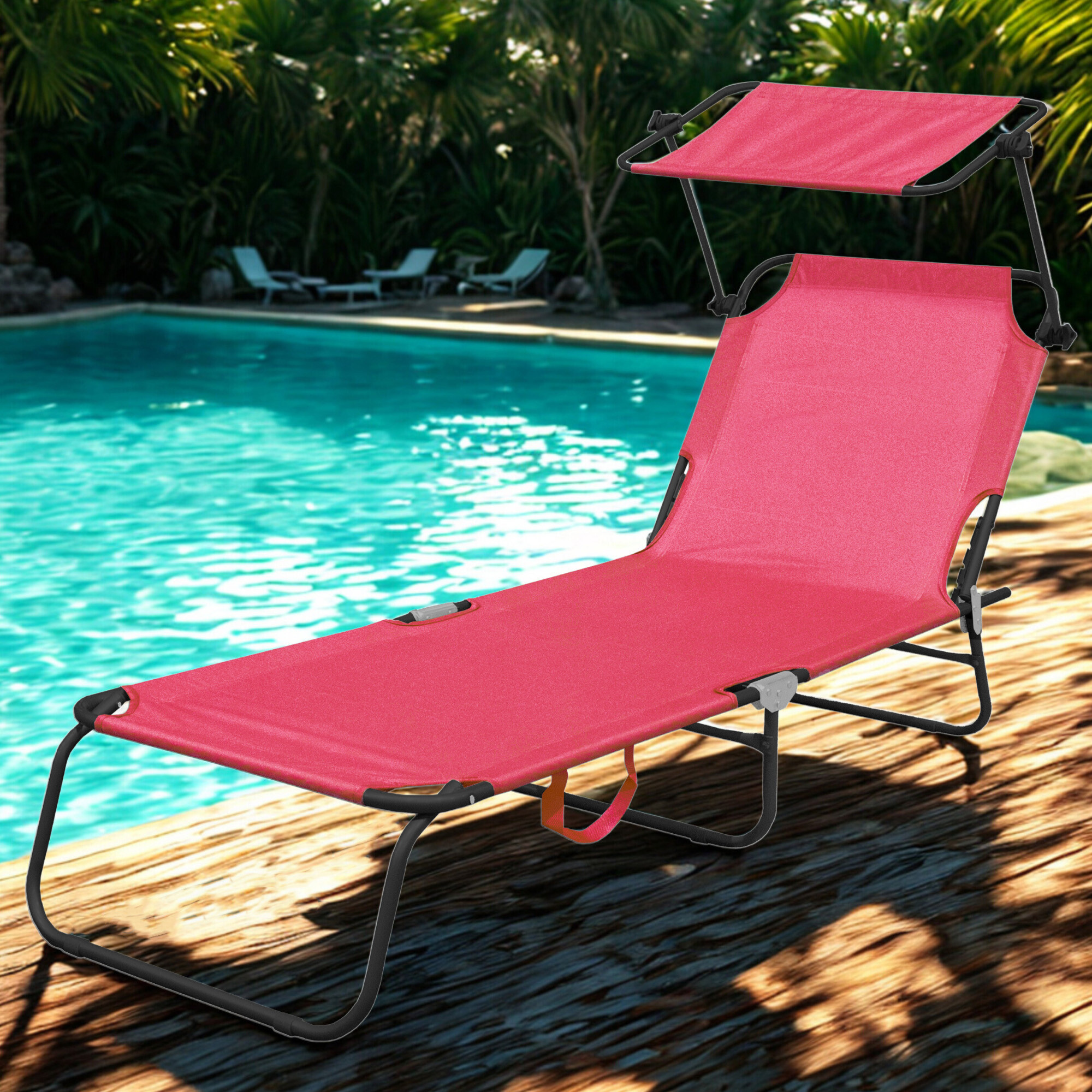 A nyugágy része egy levehető napellenző, amely szabadon állítható és megvédi az arcot az erős napsütéstől.A napozóágy háttámlája 4 különböző pozícióba állítható.