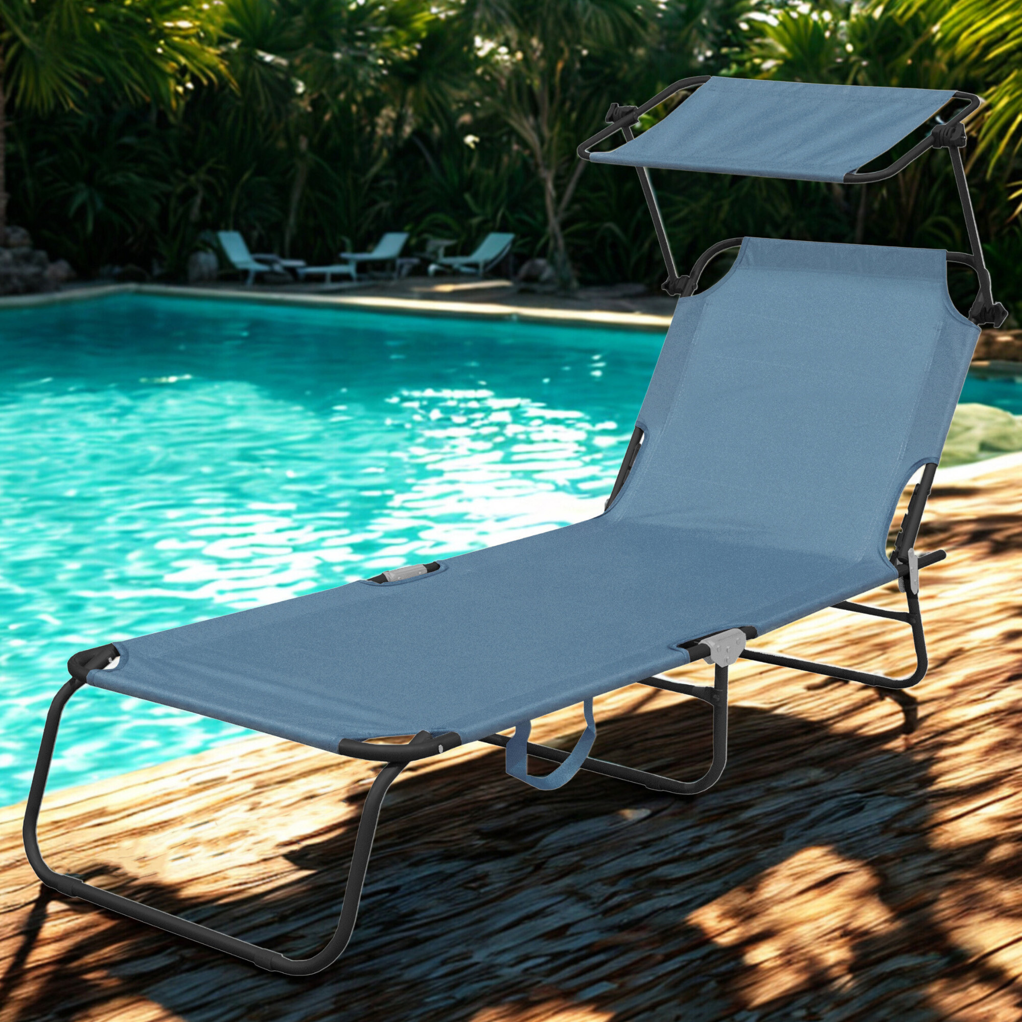 Összecsukható kerti nyugágy megerősített acélszerkezettel, modern dizájnnal, alkalmas kertekbe, kempingezéshez vagy strandokra.