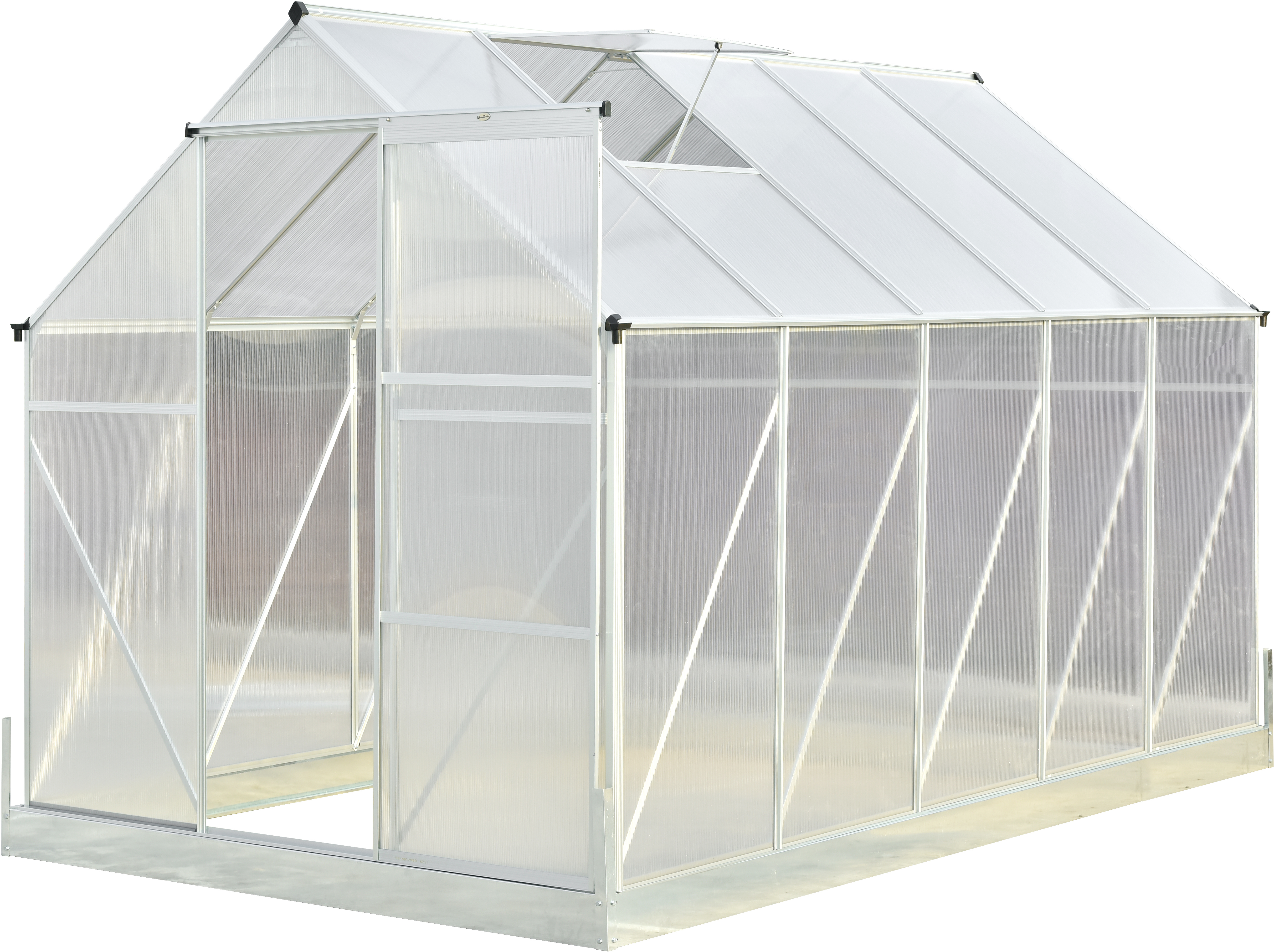 Ez az üvegház 164x59 cm-es tolóajtókkal van felszerelve.