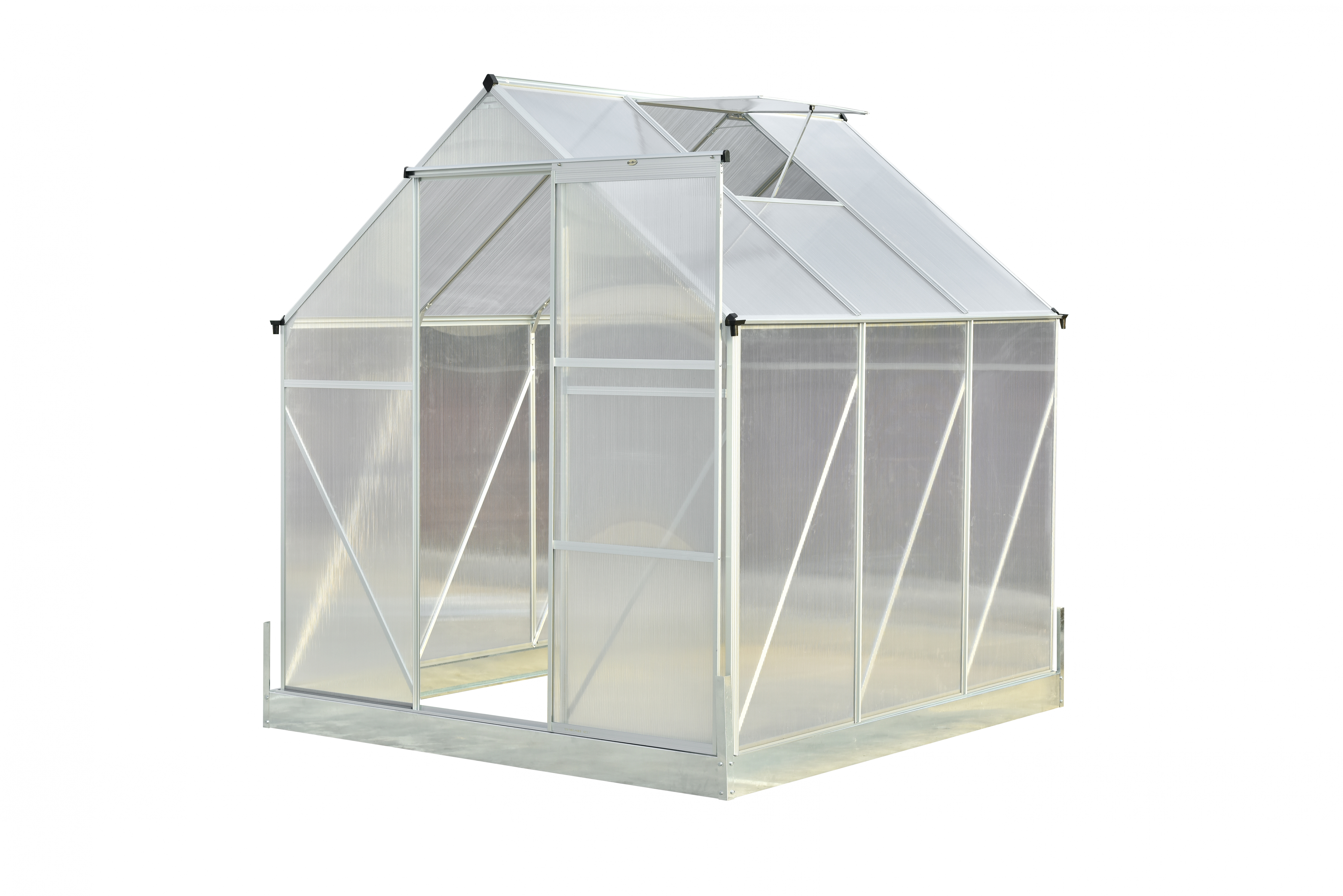 Ez az üvegház 164x59 cm-es tolóajtókkal van felszerelve.