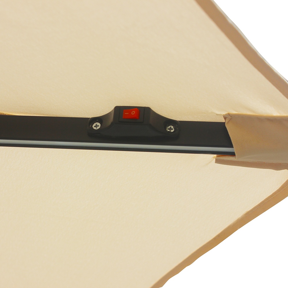 Olyan LED-csíkokat tartalmaz, amelyeket az esernyőn található napelem táplál.