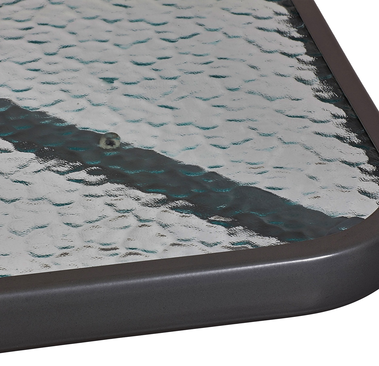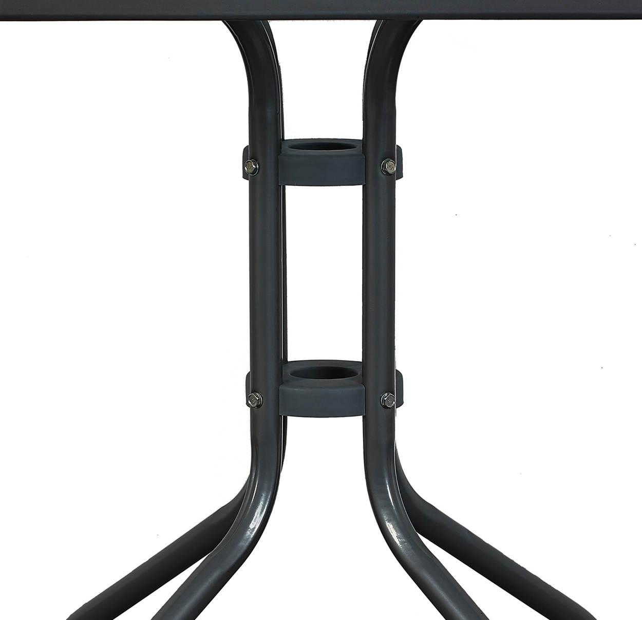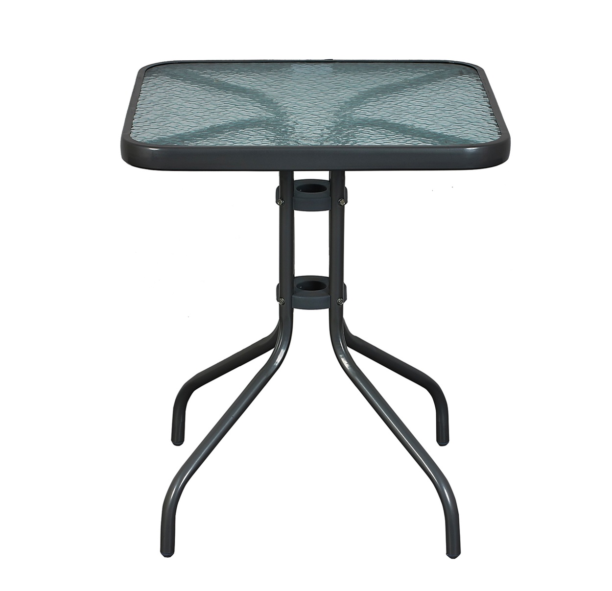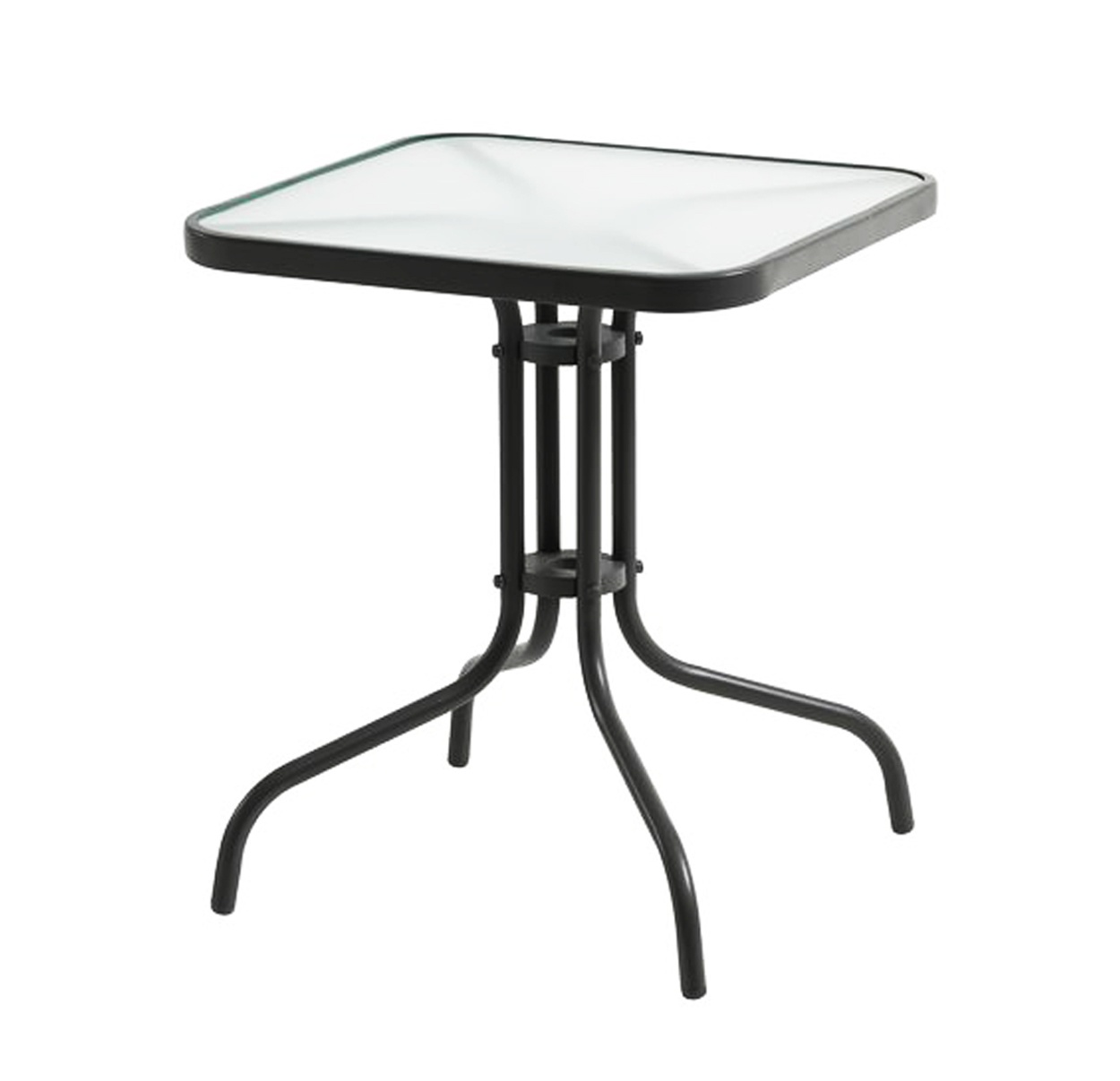 Kerti asztal tömör fémvázzal és üveglappal, kertekbe alkalmas, teraszok, kávézók, pavilonok, erkélyek.