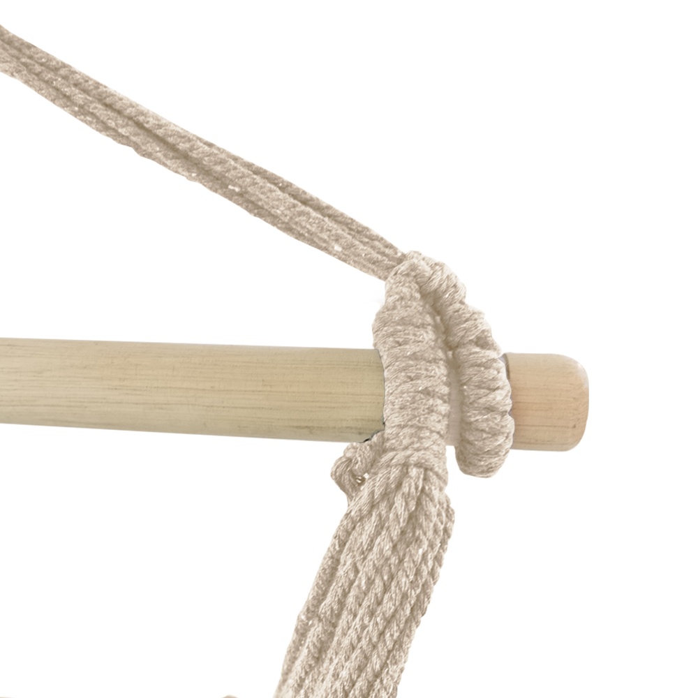 A hintaszék fa léce lehetővé teszi a test kényelmes tartását pihenés közben.