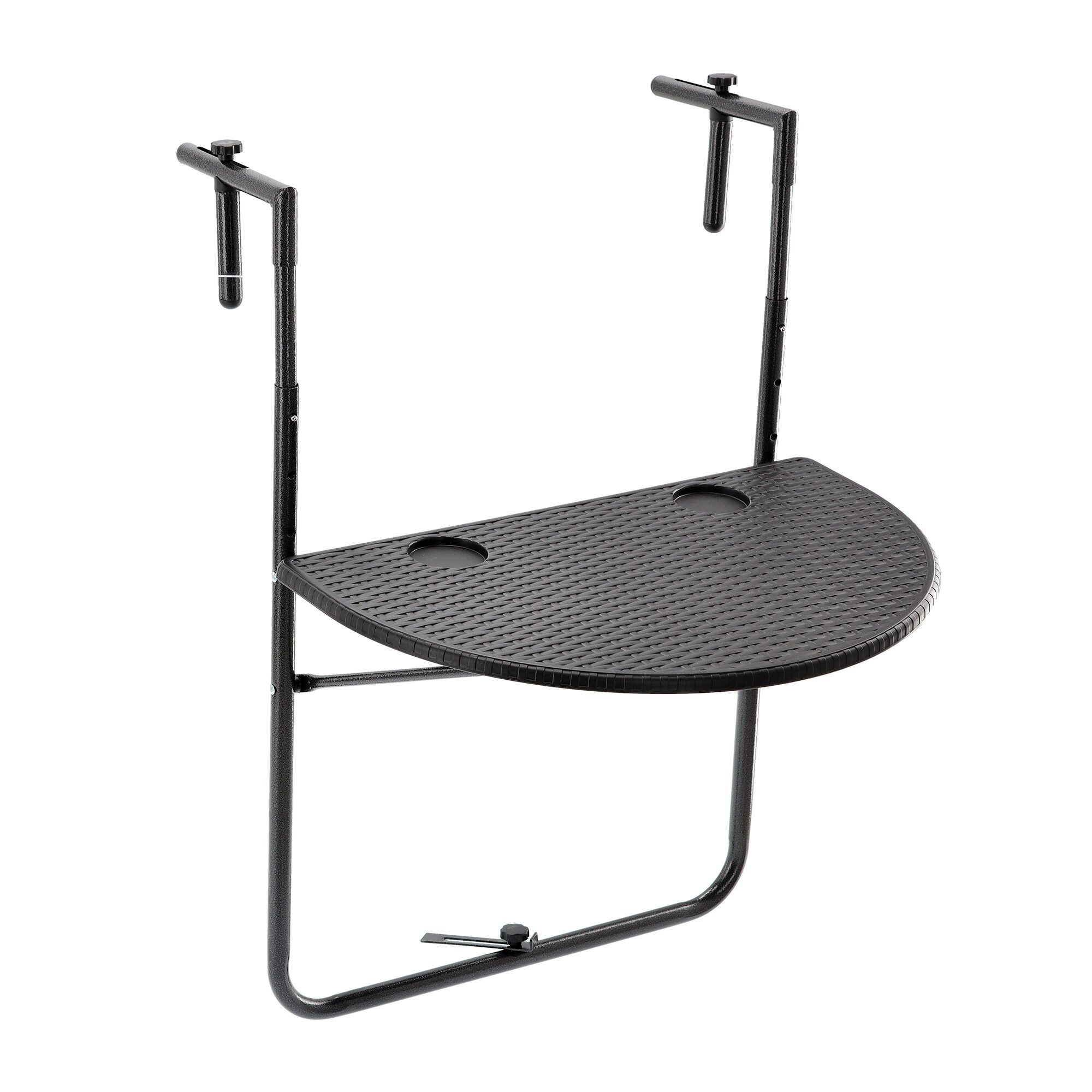Az asztal tartós anyagból készült, amelyet úgy terveztek, hogy ellenálljon a kültéri környezet nehéz körülményeinek is. A fekete szín elegáns megjelenést kölcsönöz az asztalnak, amely tökéletesen beleolvad az erkélye környezetébe.