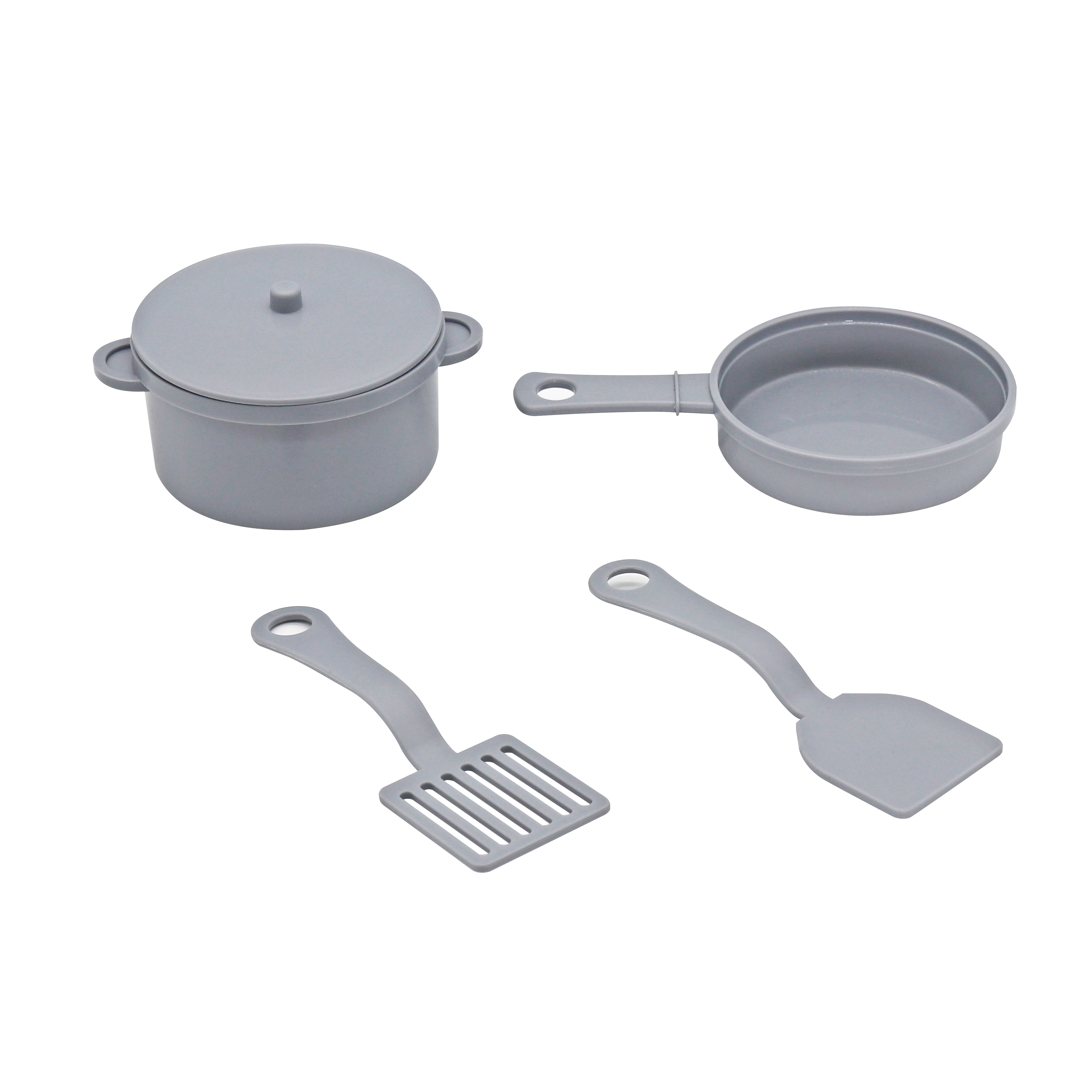 Ízletes ételek elkészítéséhez a gyerekkonyha edényekkel van felszerelve.