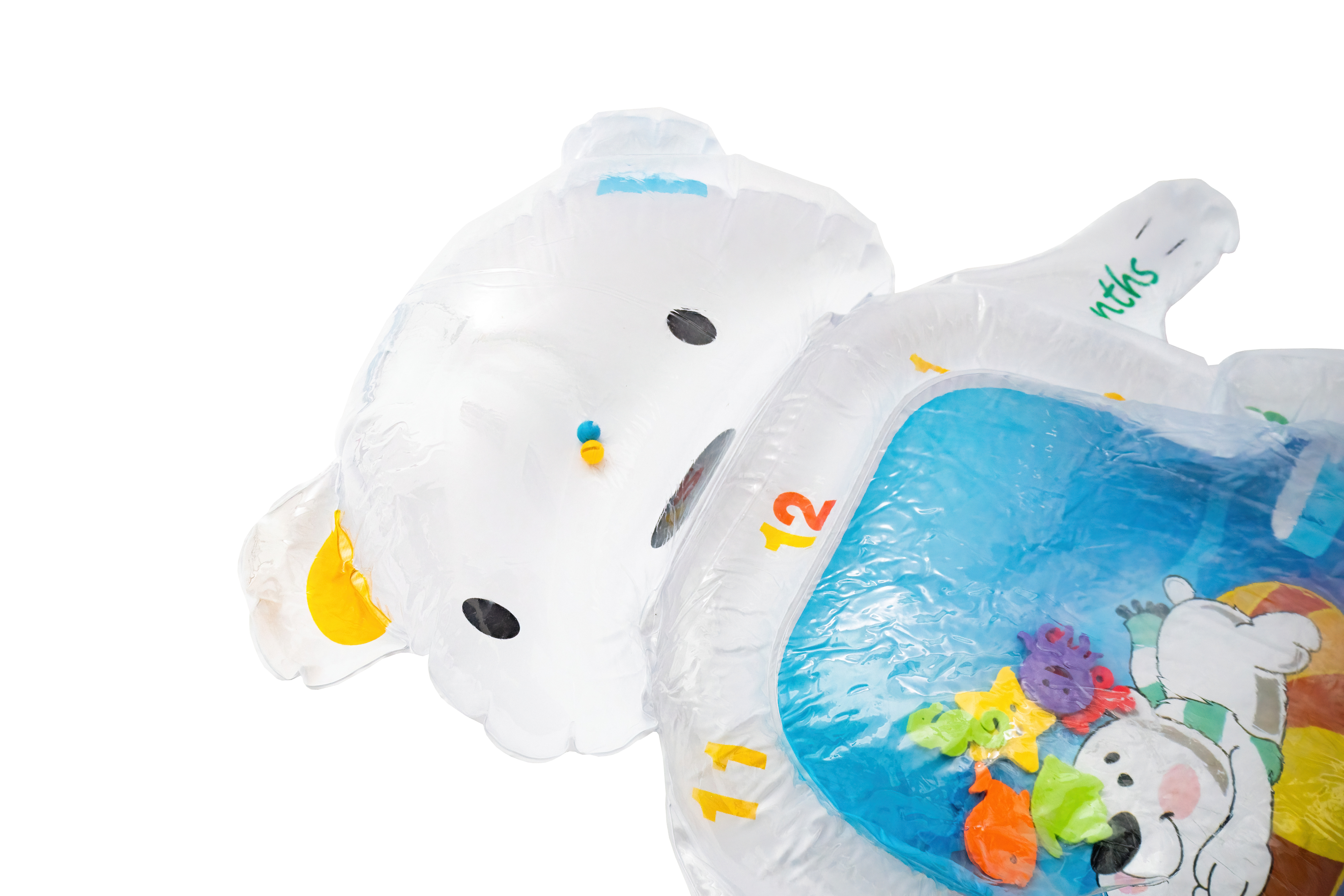 A felfújható szőnyeg a legkisebb gyermekek számára is alkalmas.Ezek a játékok támogatják a gyermek fejlődését azáltal, hogy segítik a motoros készségek edzését, valamint a nyak-, fej-, has- és hátizmok megfelelő fejlődését.
