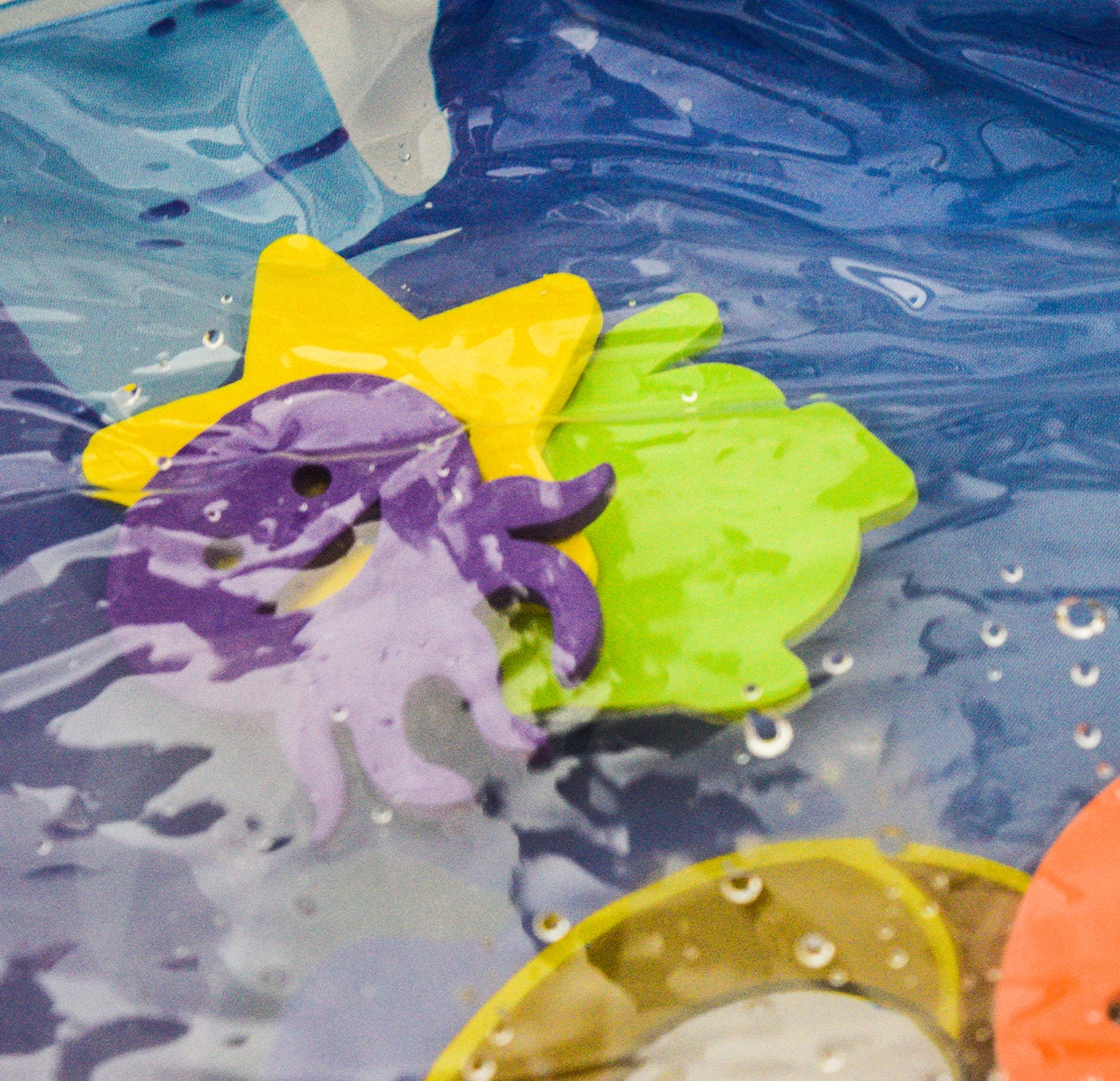 Egyszerűen fújja fel a párna szélét, és töltse fel a közepét vízzel, vagy fújja fel.A benne lévő víznek köszönhetően a tengeri állatok formájú elemek mozgásba jönnek, és játékra ösztönzik a gyermeket.