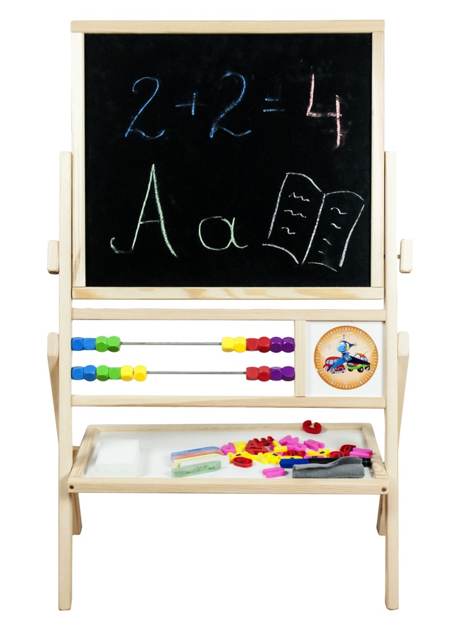Forgatható mágneses gyermek tábla tároló polccal, számlálóval és órával, az Aga4Kids-től.