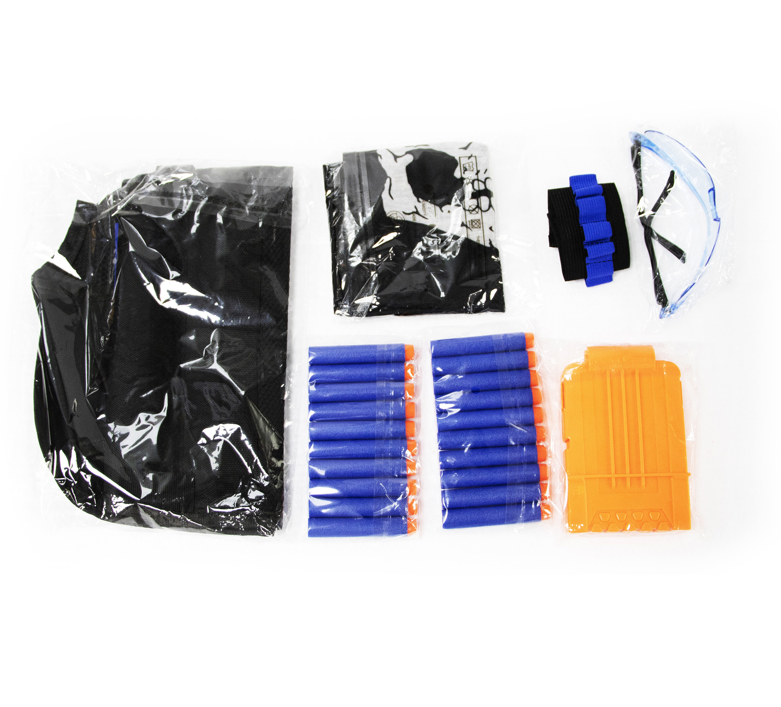A mellényben talál helyet a lőszerek, kiegészítők és a tár tartójának tárolására. A készletben védőszemüveget is talál, amely védelmi funkcióval rendelkezik.