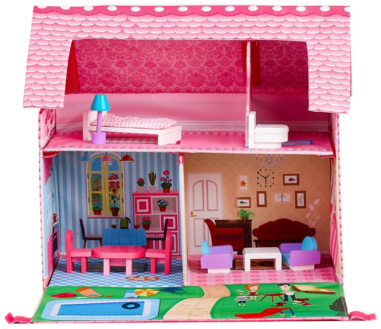 A ház kisebb babákhoz van igazítva.Ez a játszóház elég nagy ahhoz, hogy egyszerre több gyermek is játszhasson vele.