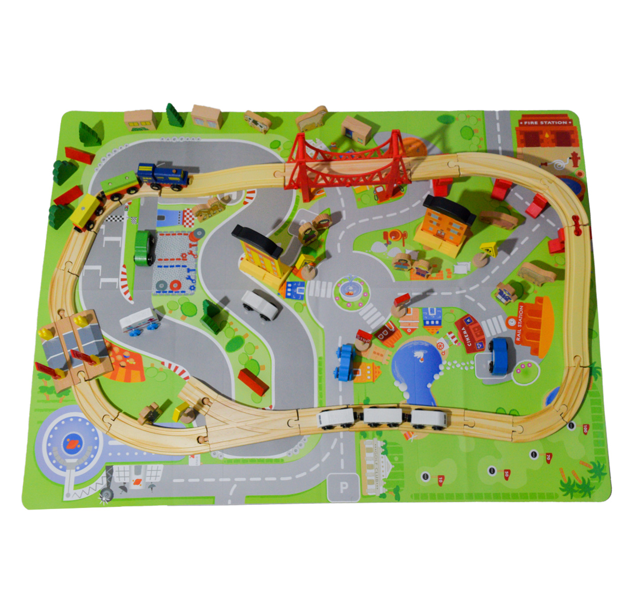 Fából készült vonatpálya gazdag tartozékokkal az Aga4Kids cégtől.