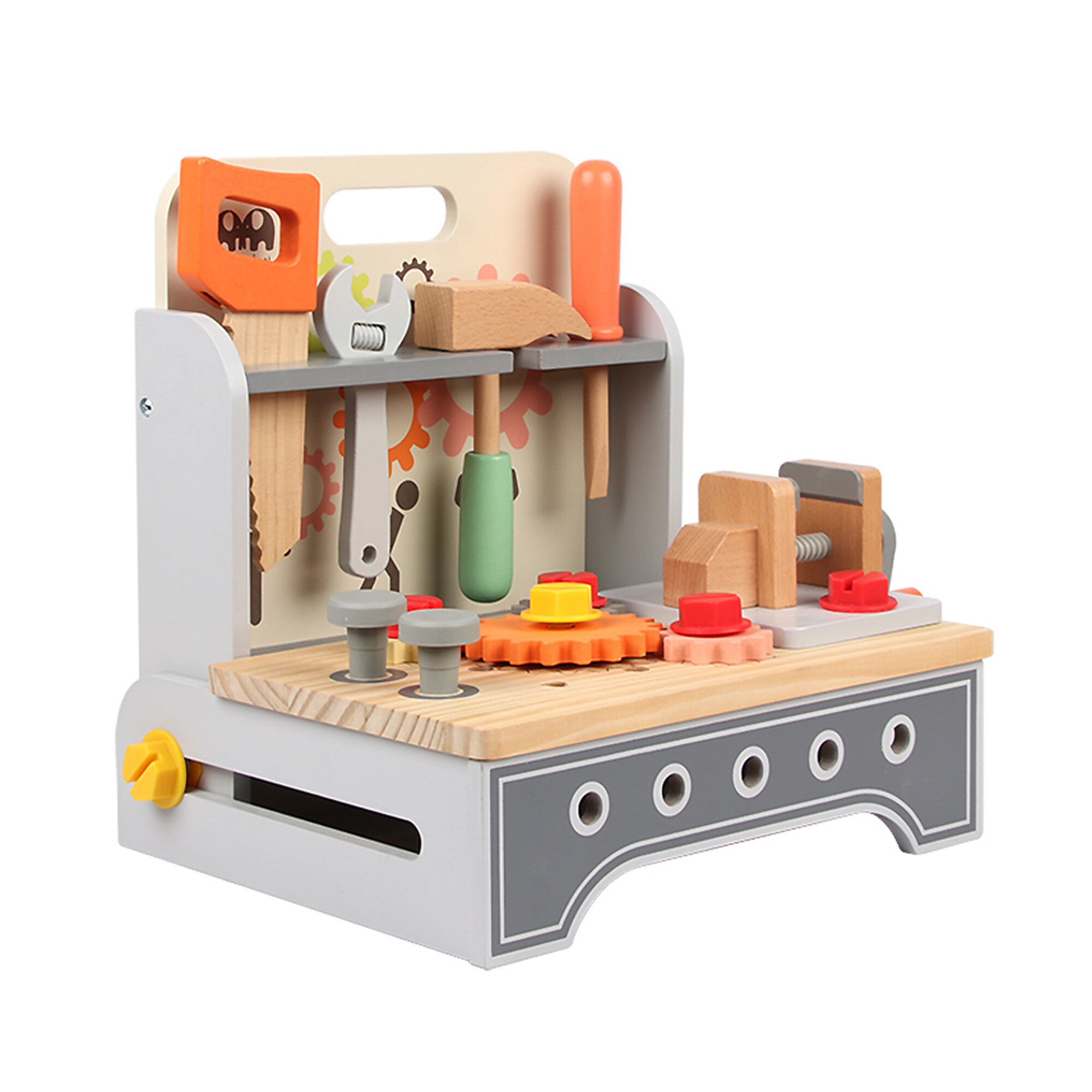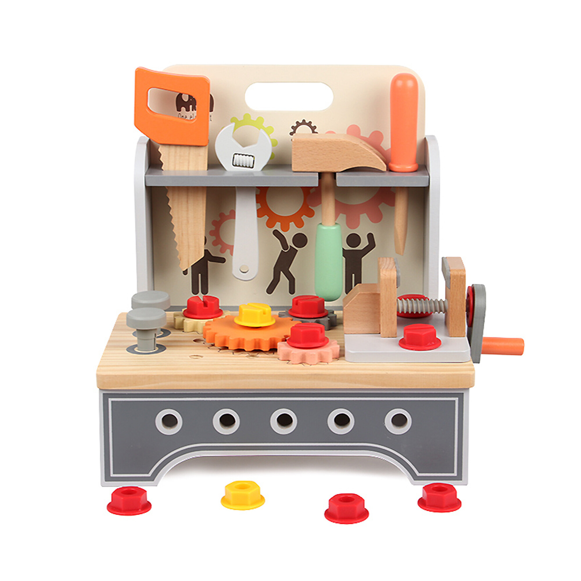 A műhely mindent tartalmaz, amire egy kis ezermesternek szüksége van - fűrész, csavarhúzó, csavarok, állítható kulcs, fúró, satu és egyéb kiegészítők.