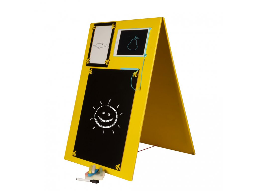 A tábla másik fekete oldala krétával való rajzolásra szolgál.Tartalmaz egy táblagépet és egy mágneses táblát is. A táblák a finommotoros készségek fejlesztésére irányulnak, elősegítve a gyermek türelmét és készségfejlesztését. Adja át gyermekeinek ezt a vonzó táblát, és szerezzen nekik szórakozással és tanulással teli pillanatokat!