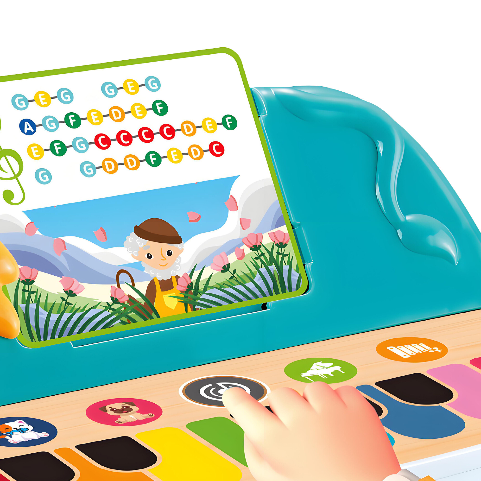 A zongorának nyolc billentyűje van, ami elegendő teret biztosít a dallamokkal és ritmusokkal való kísérletezéshez. A gyermek felfedezheti a különböző hangokat, és saját zenei kompozíciókat hozhat létre.