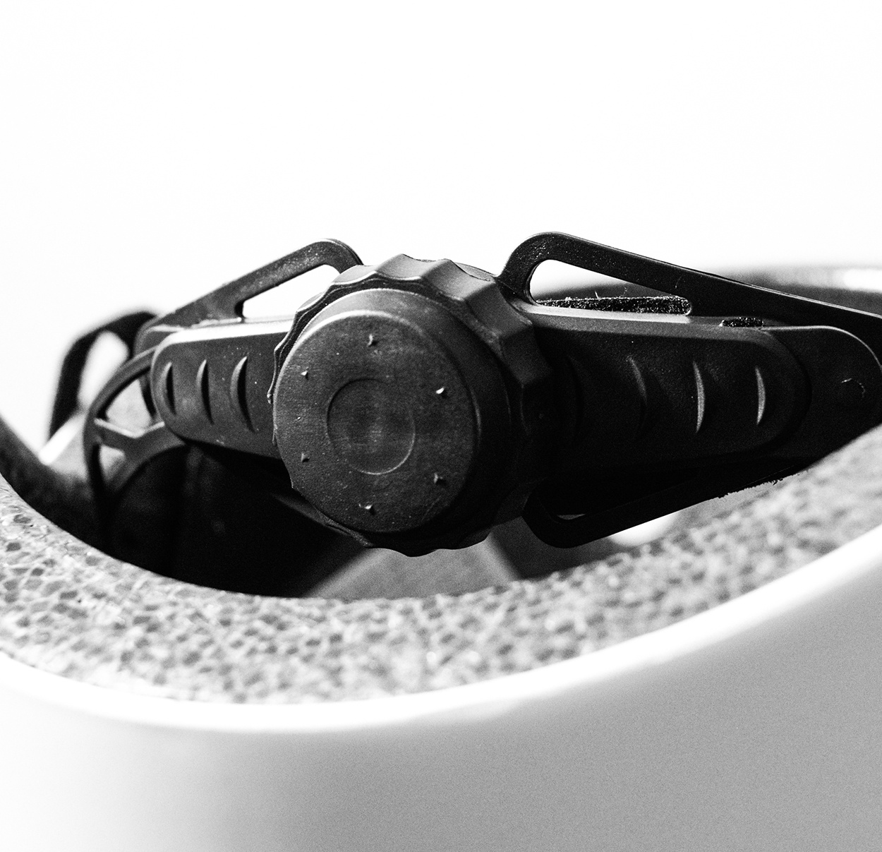 A csat megkönnyíti a sisak egy kézzel történő ki- és bekapcsolását. Állítható klipszek. A fejpánt kerületét saját maguk állíthatják be a rögzítő kerék segítségével.