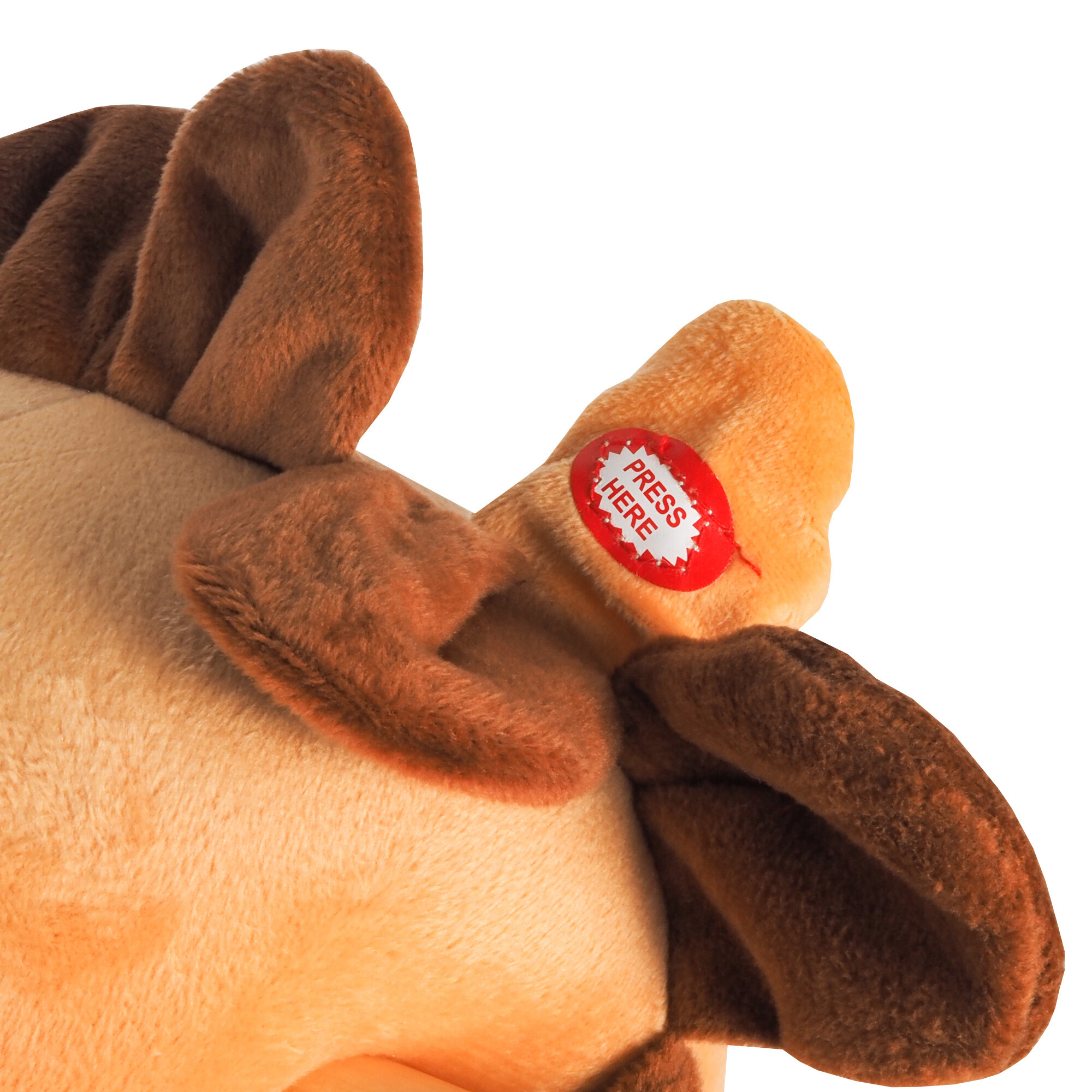 Az állatka fülében található egy gomb, amely megnyomás után gyerek altatódalt kezd játszani. Ez a funkció további szórakozási dimenziót ad, és segít fejleszteni gyermeke érzékelését. A zene finom és megnyugtató, ami ideális a pihenés és a relaxáció pillanataihoz.