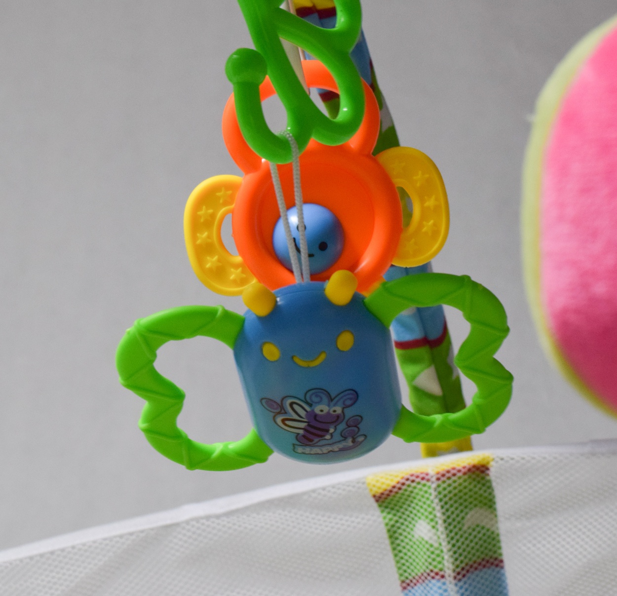 A játéktakaró a színek és formák felismerésén keresztül segíti a gyermekek képzelőerejének fejlődését, a zörgő és mozgó részeknek köszönhetően pedig erősíti az érintés, a látás és a hallás érzékszerveit.