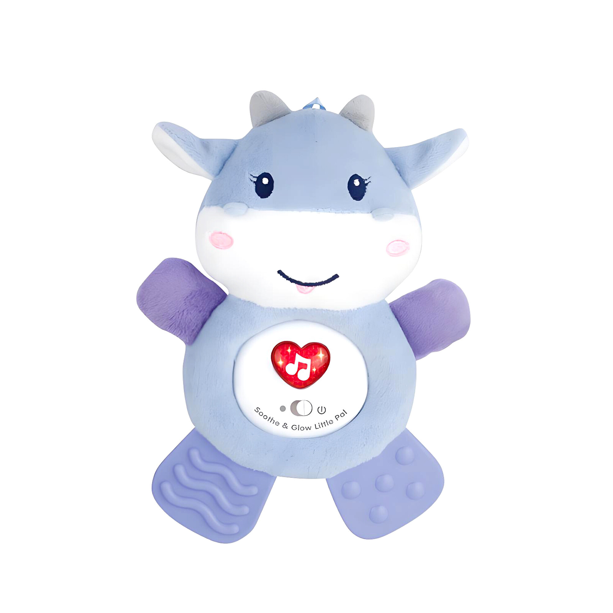A tehén hasán lévő szívecske megnyomásával vidám dallamok aktiválódnak, és a szívecske a zene ritmusára világítani kezd. Ez serkenti a babája hallását és látását, valamint támogatja az érzékszervi fejlődését.A tehénkét könnyen felakaszthatja a babakocsira, kiságyra, játszószőnyegre vagy az autóba. A babája mindig elérhető közelségben lesz hűséges társával.