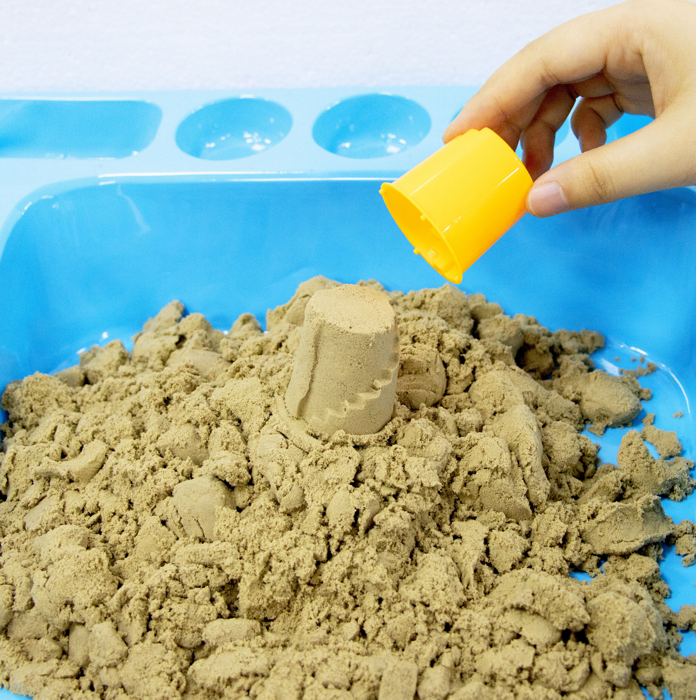 A kinetikus homokkal való játék fejleszti a finommotorikát, a kreatív képzelőerőt és a térbeli gondolkodást.