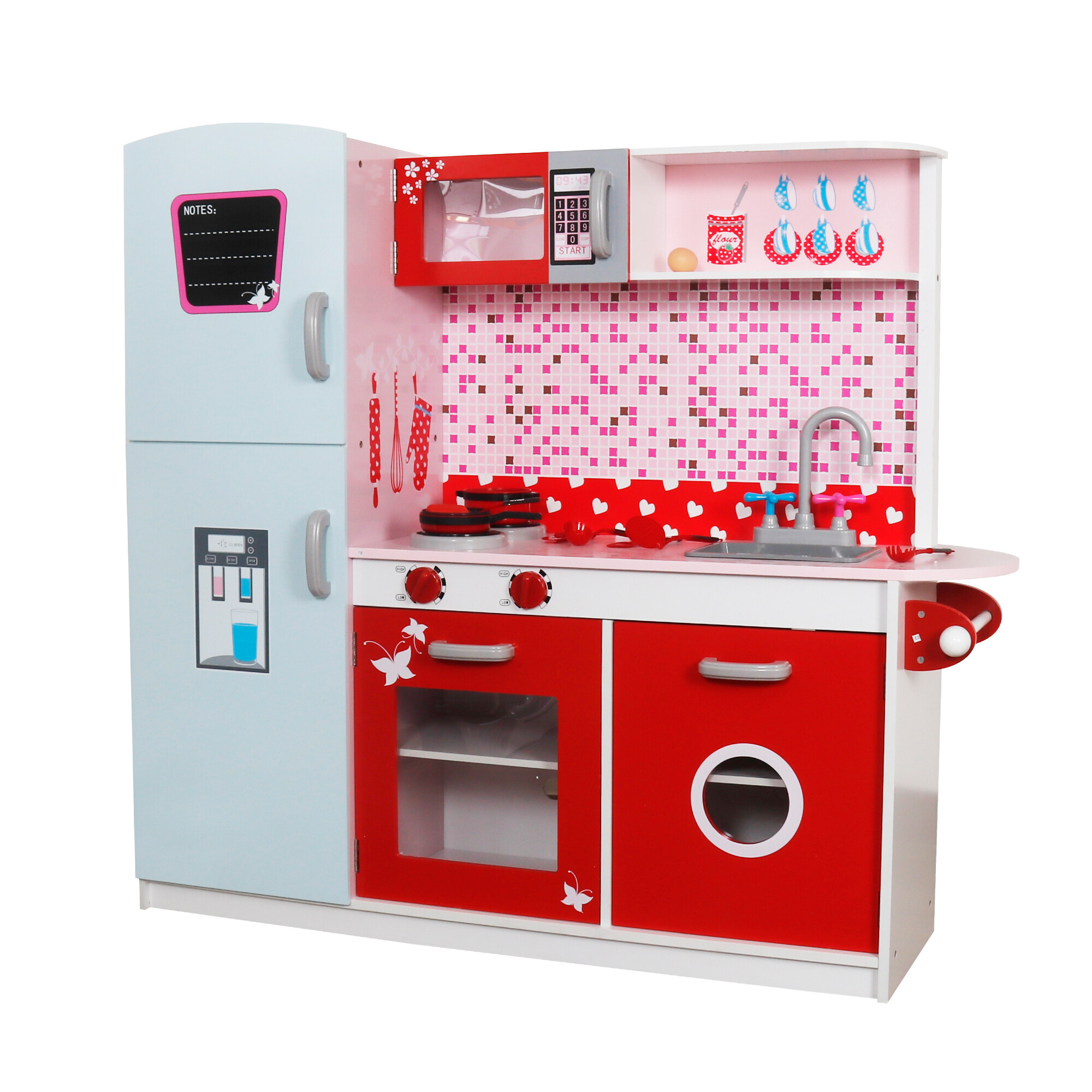 Ez a gyermekkonyha modell számos funkcionális elemmel és tartozékkalvan felszerelve. Akonyhaelég nagy ahhoz, hogy egyszerre több gyerek is játszhasson vele.