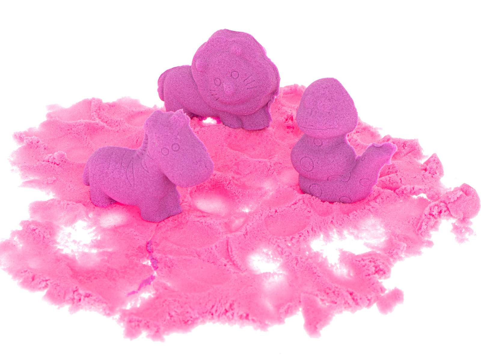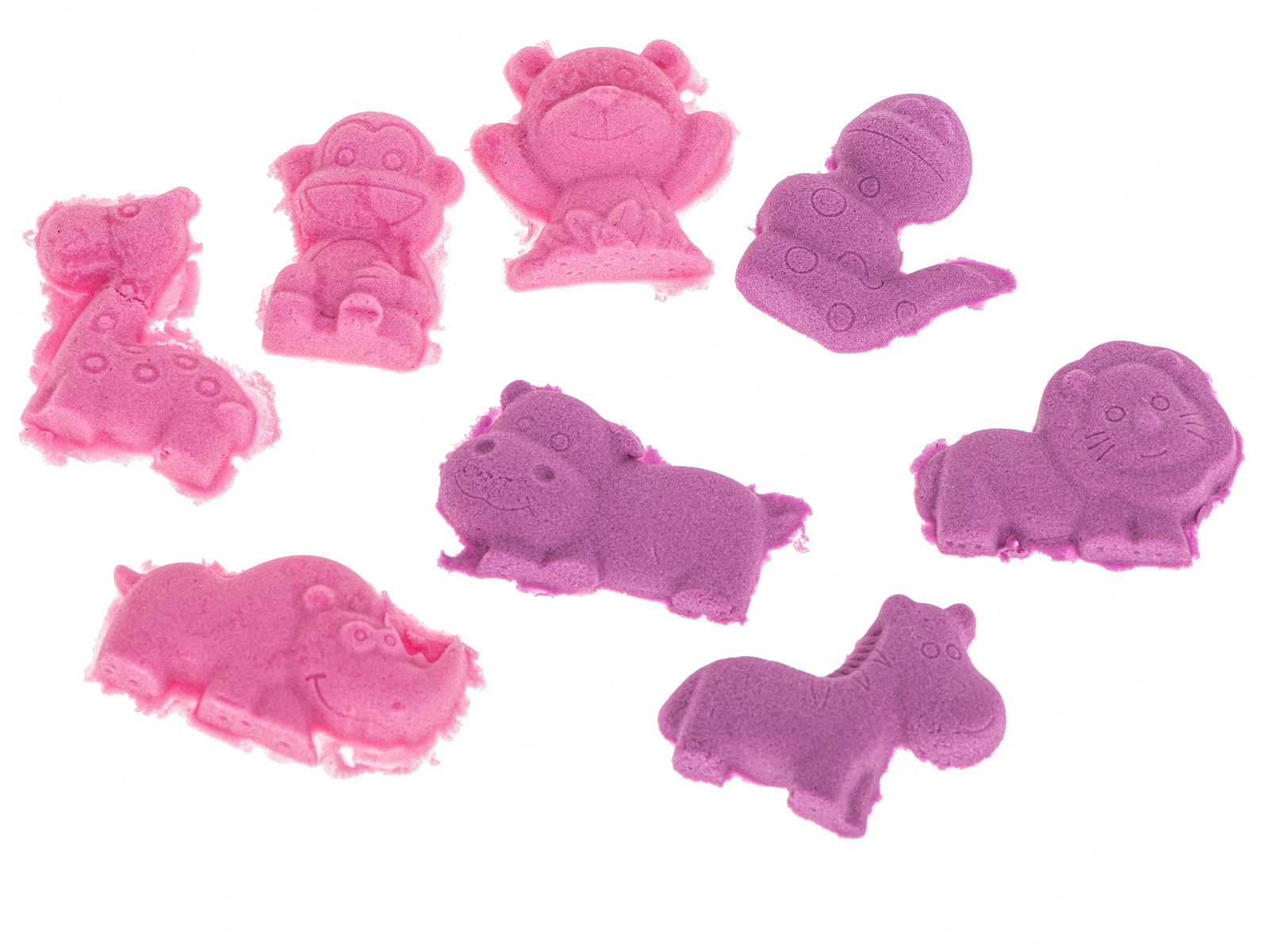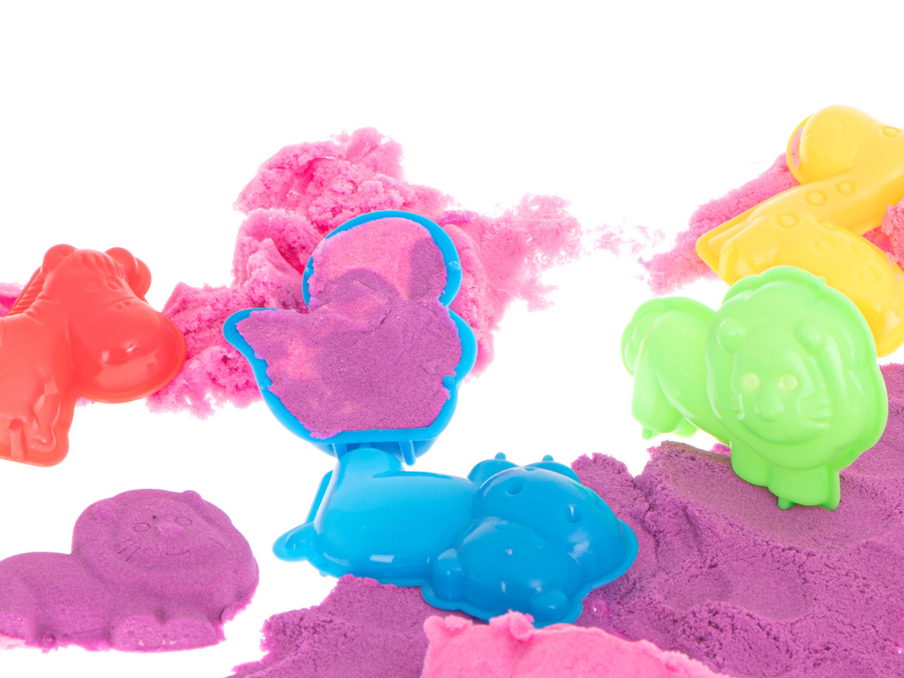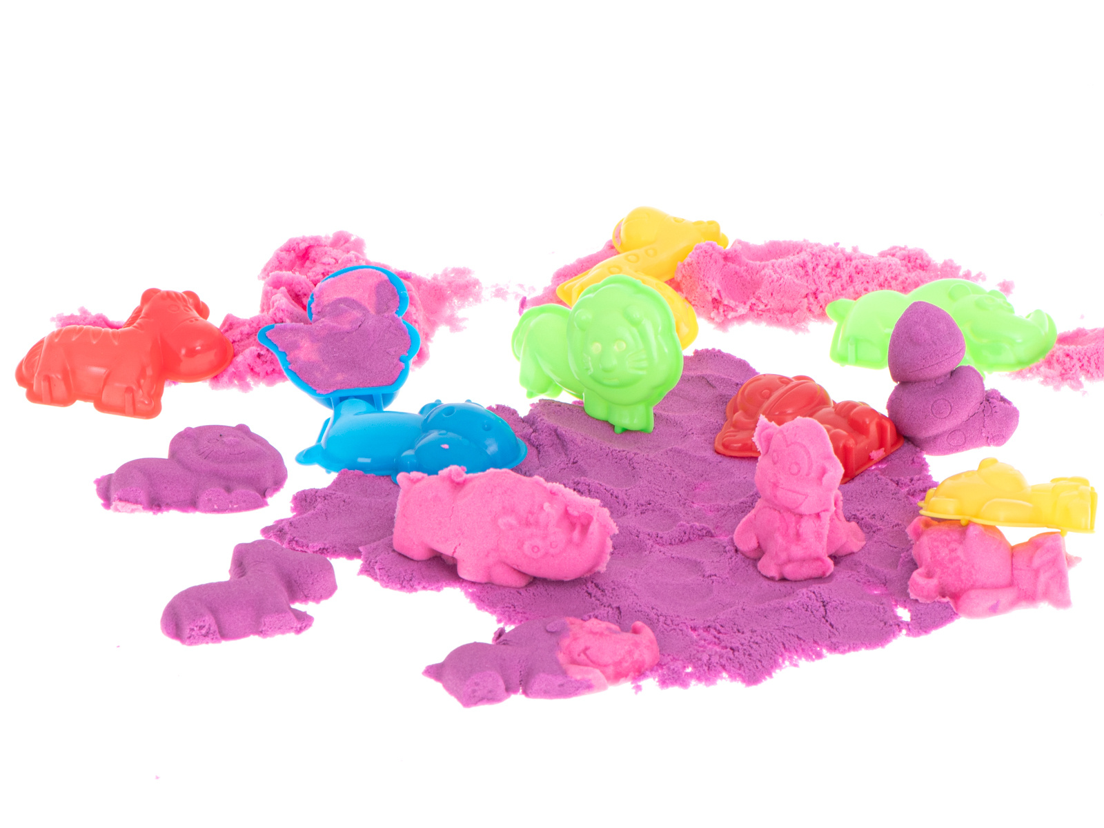 - A csomag tartalma: 200 g lila homok, 200 g rózsaszín homok és 8 állatformáttartalmaz
