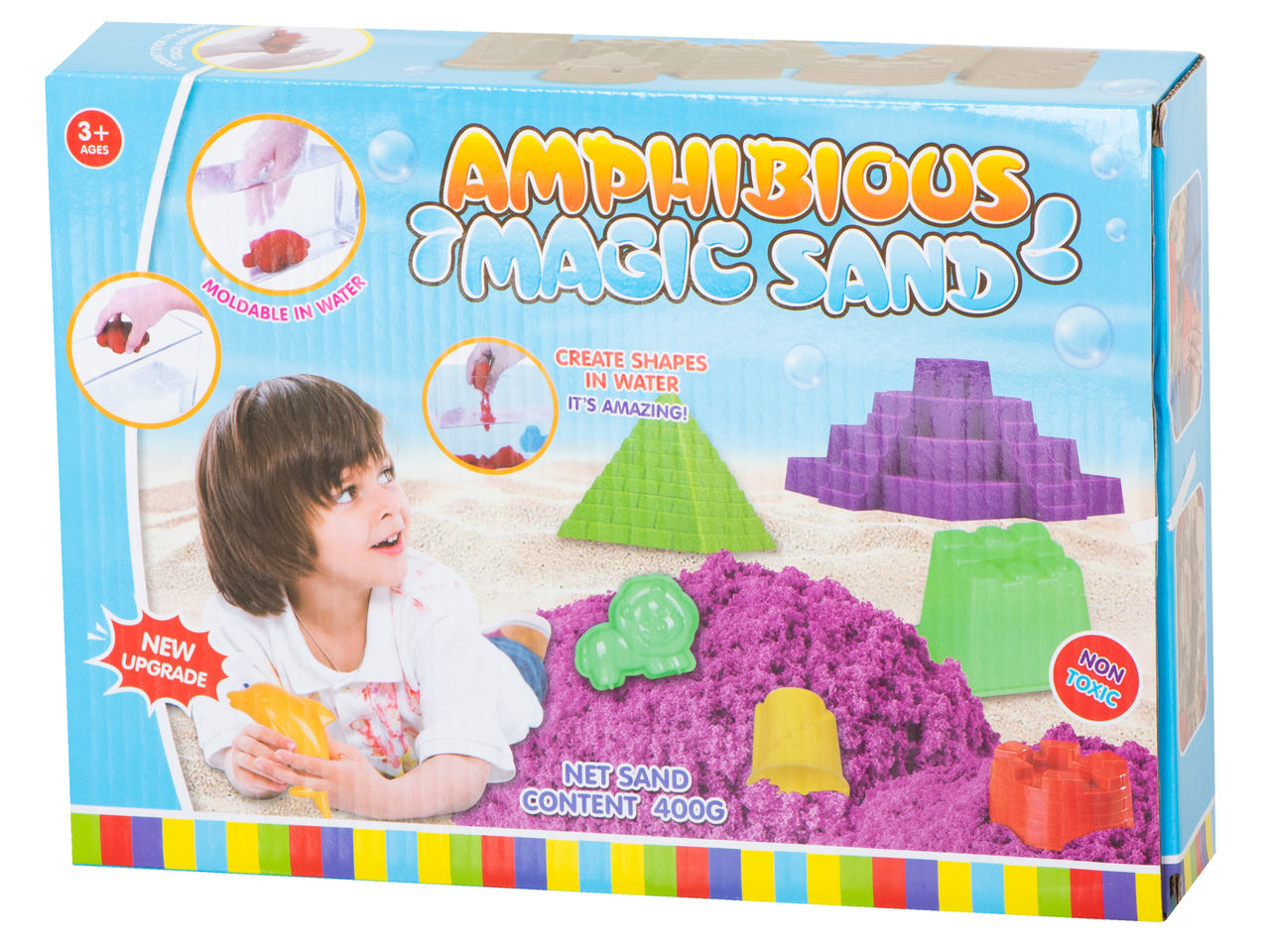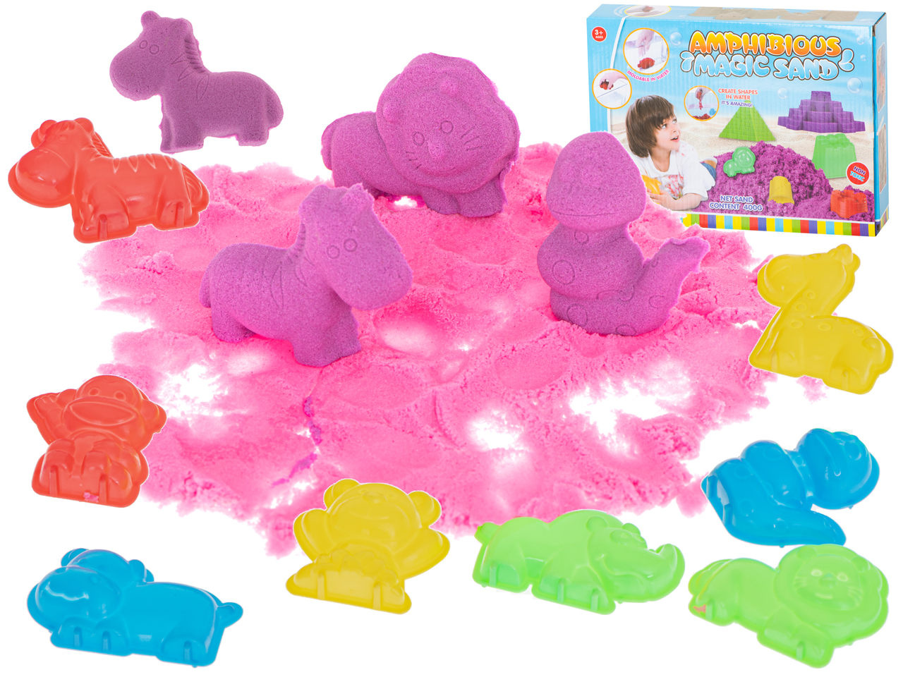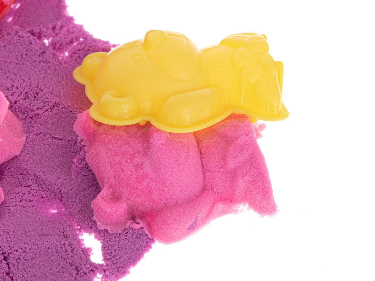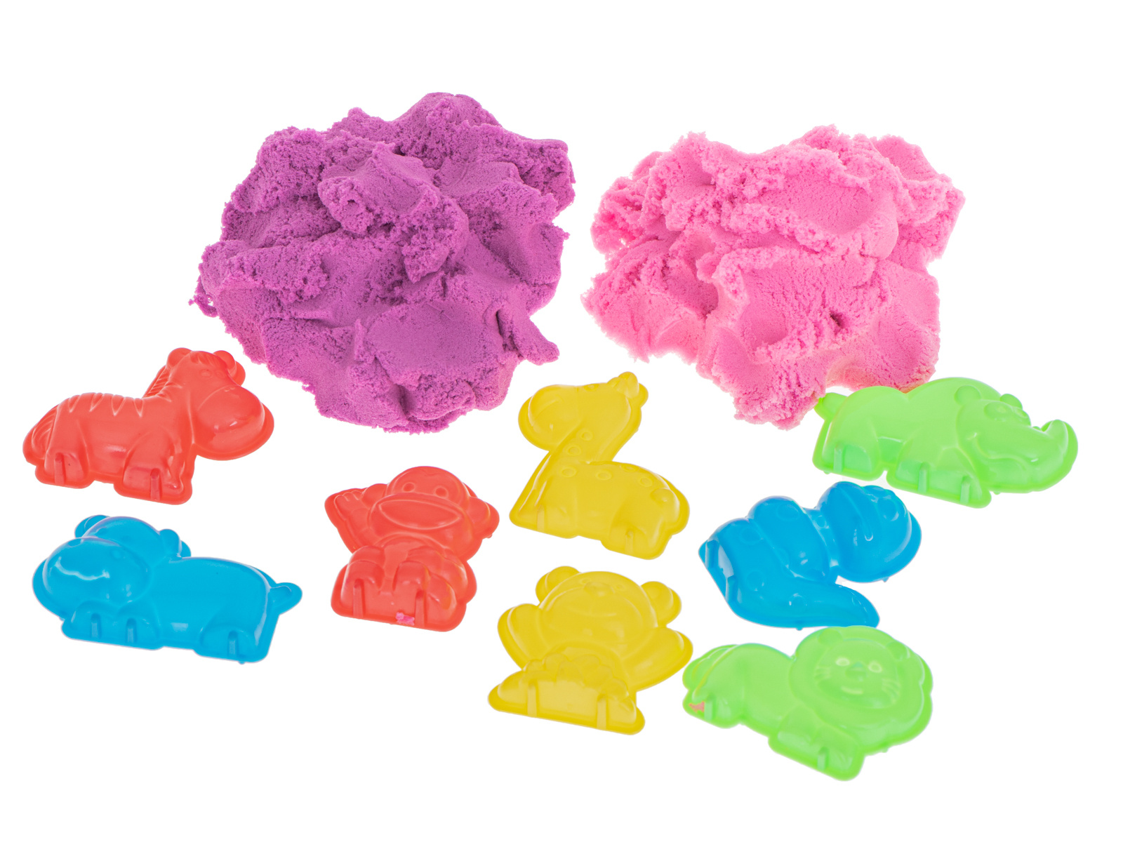 - A csomag tartalma: 200 g lila homok, 200 g rózsaszín homok és 8 állatformáttartalmaz