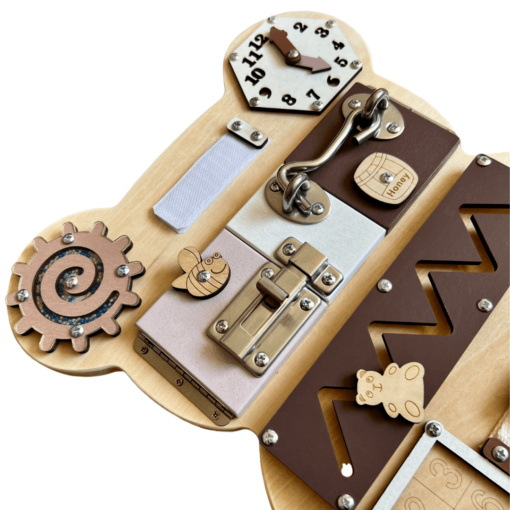 A gyerekek számára készült mackó alakú oktatótábla nagyszerű módja annak, hogy a gyerekek természetes úton, játék közben tanuljanak, fejlesszék képességeiket, kreativitásukat, logikus gondolkodásukat, türelmüket és finommotorikájukat.