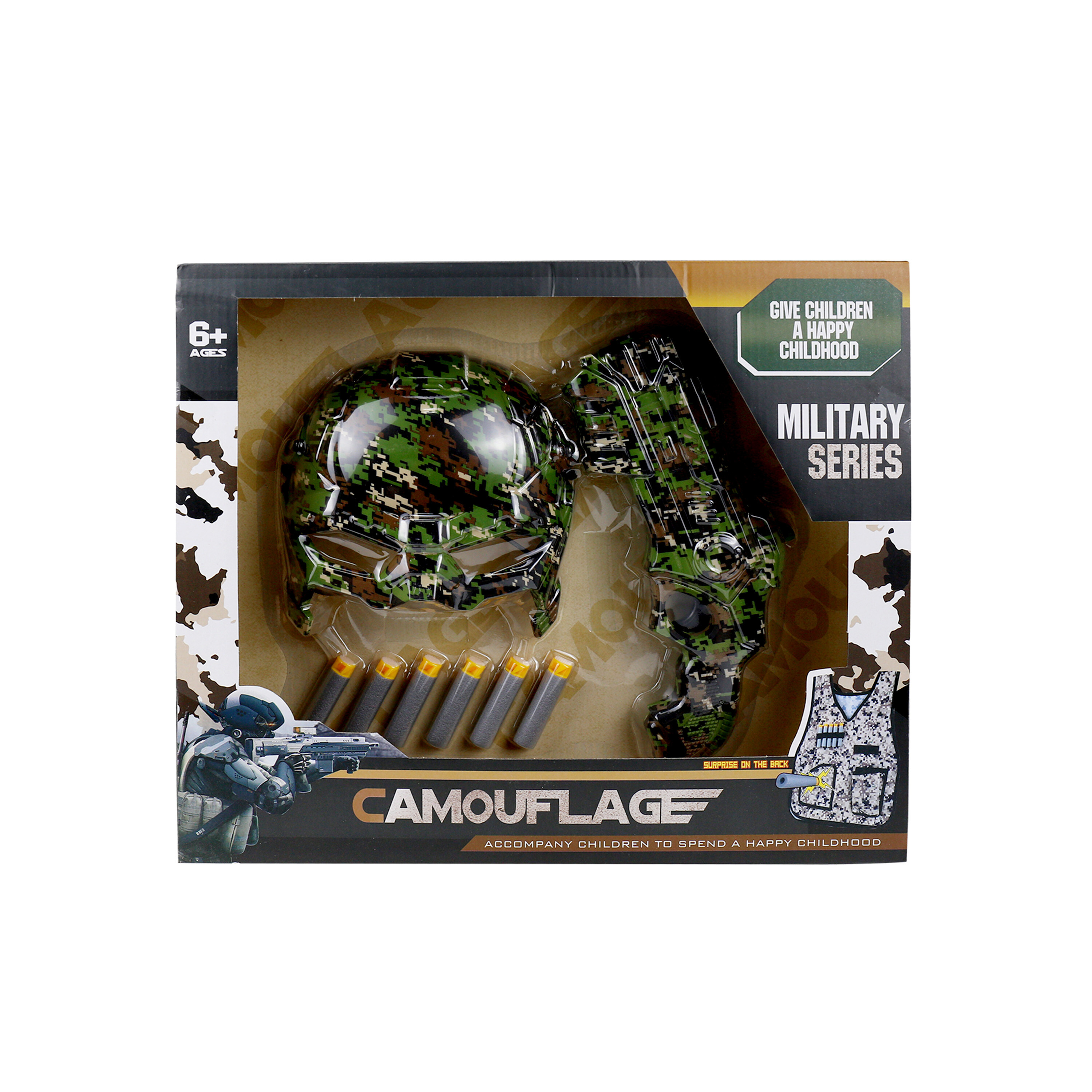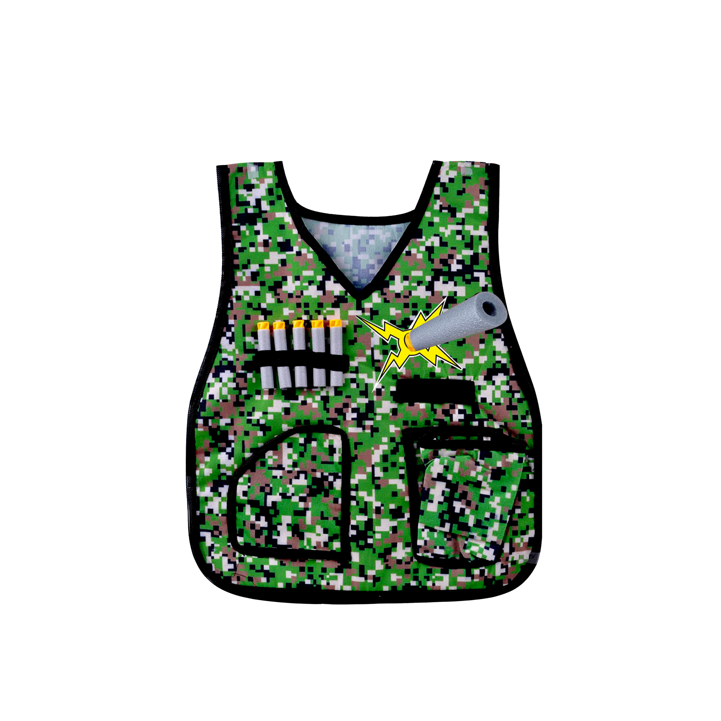 A taktikai mellény elengedhetetlen része minden kis katona számára a csatatéren. Ennek köszönhetően mindig lesz lőszer a fegyveréhez.A készlet másik eleme egy maszk, amelynek köszönhetően gyermeke igazi harcosnak fog kinézni.