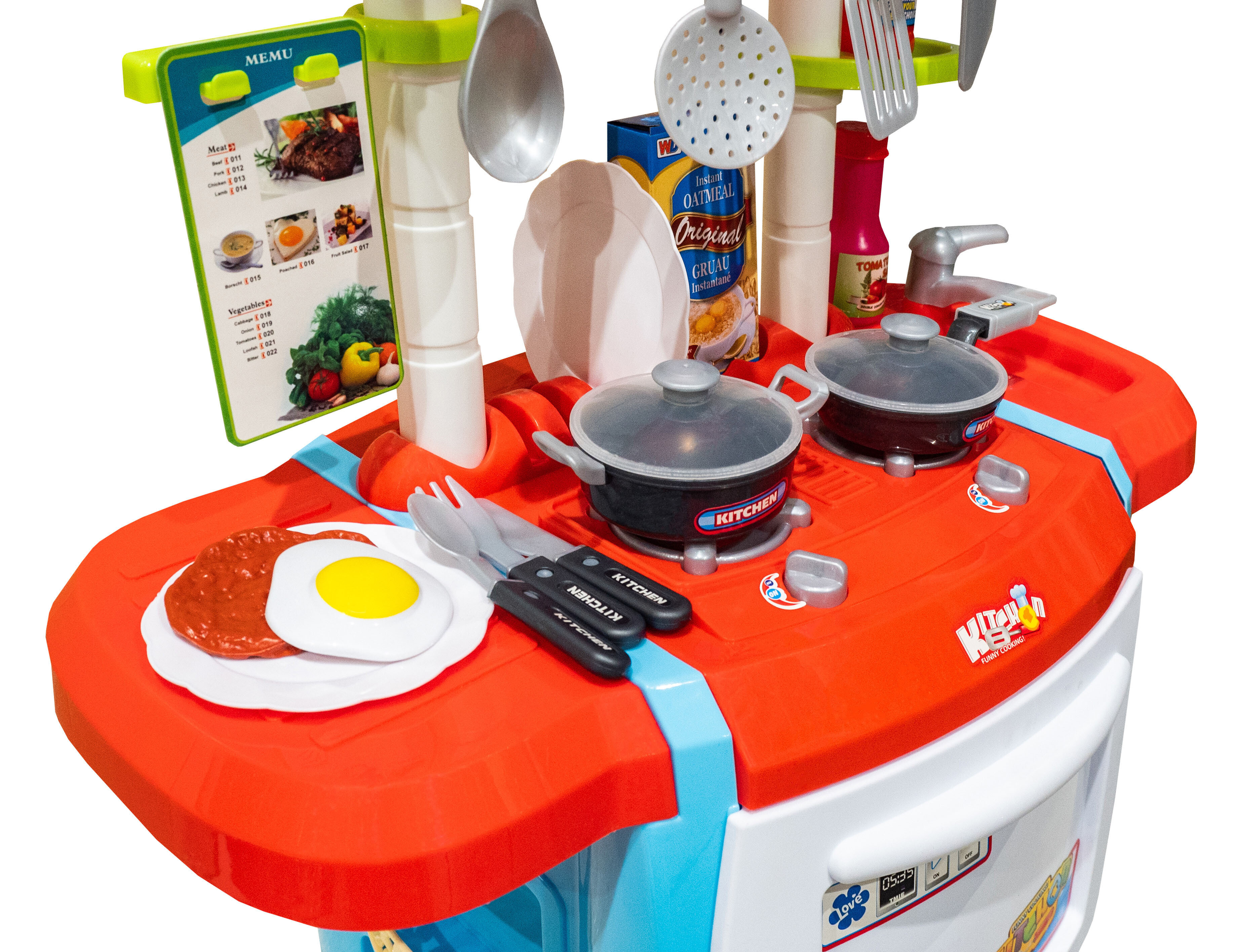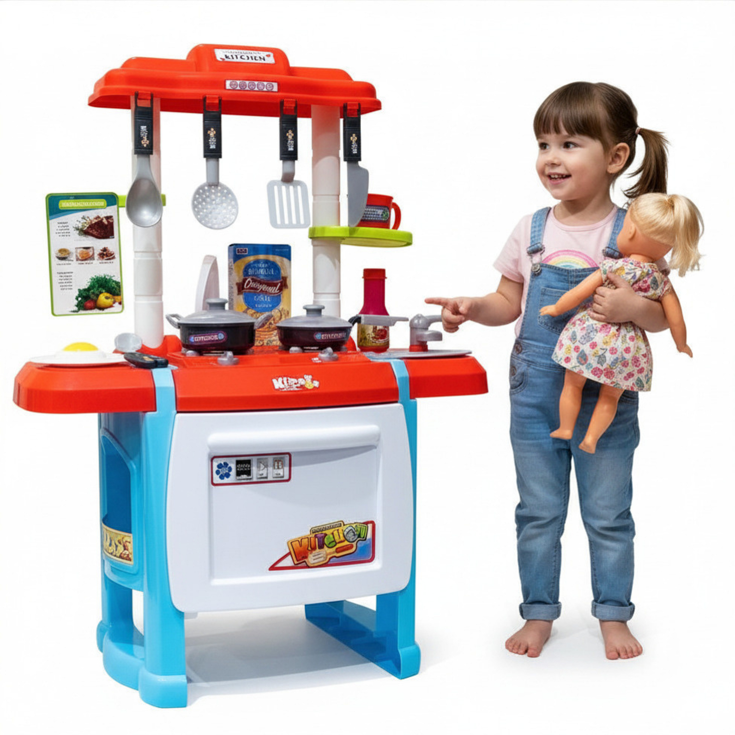 A gyerekkonyha készlet gazdag tartozékokkal van ellátva. Ez a gyerekkonyha ideális ajándék minden alkalomra.