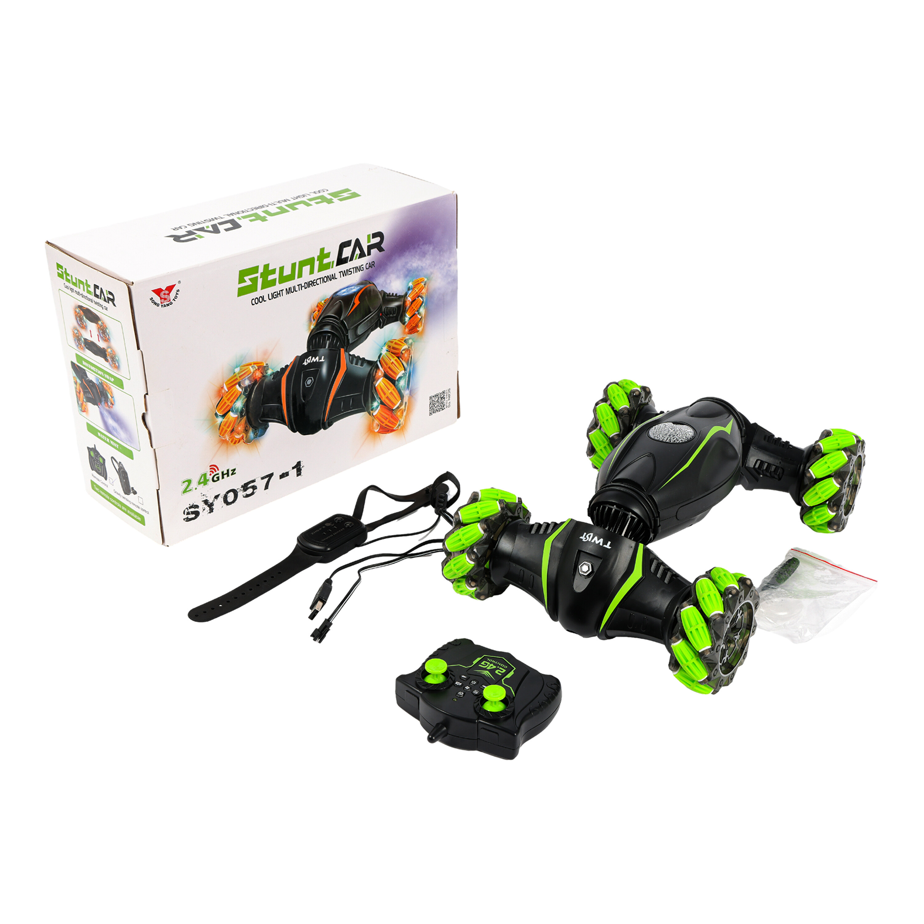 Az RC autómodell két távirányítóval rendelkezik, akár távirányítóval, akár mozgásvezérlős karkötővel. Kézmozdulatokkal történő vezérlés az autó előre, hátra vagy oldalra mozog a kezed elhelyezkedésétől függően a karkötőbe épített mozgásérzékelőnek köszönhetően